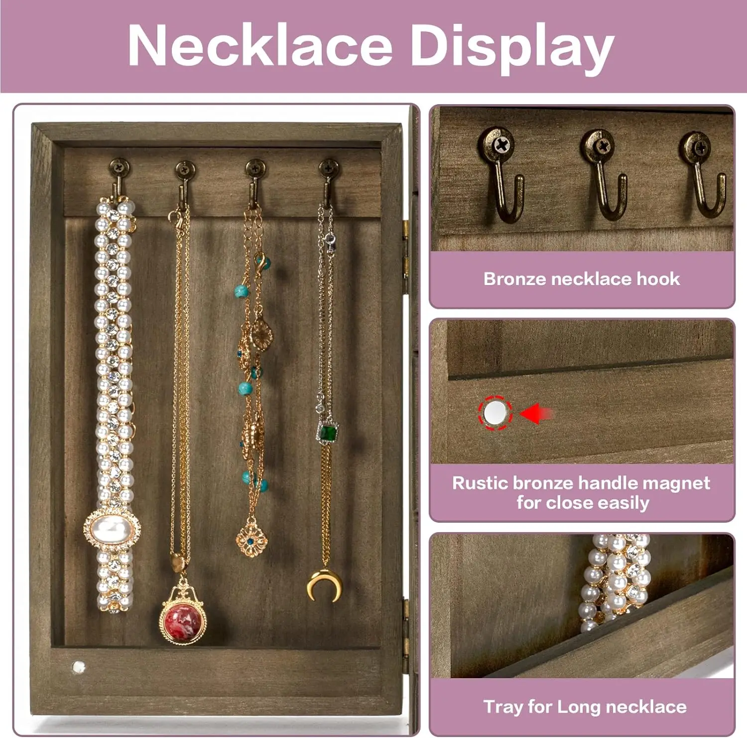 - ❤Natural Solid Wood: Made of rustic quality wood, sturdy and durable to stand heavy jewelry. Linen cloth-covered inside keeps your jewelry well against dust, scratches, damages. Metal delicate handle highlights retro beauty. The large wooden jewelry box can last for years.
