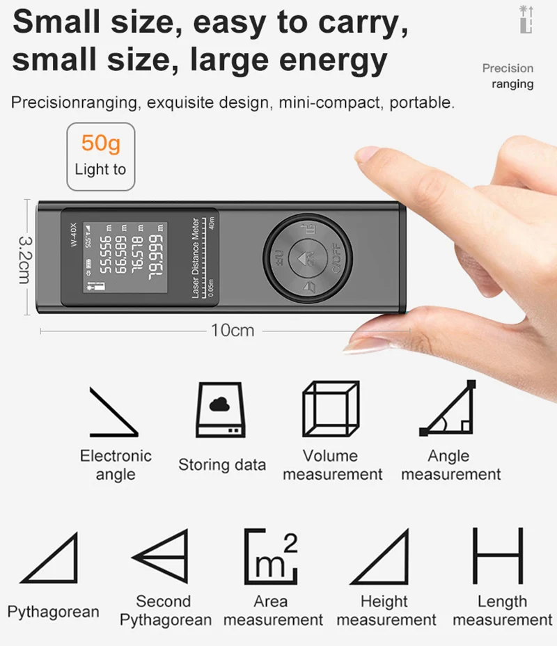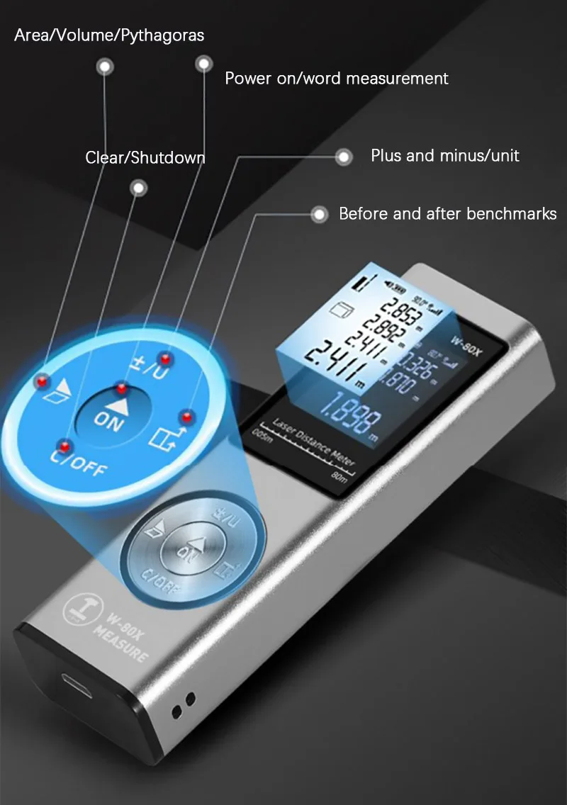 -Our product is multifunctional and can measure distance, area and volume accurately, quickly and easily.