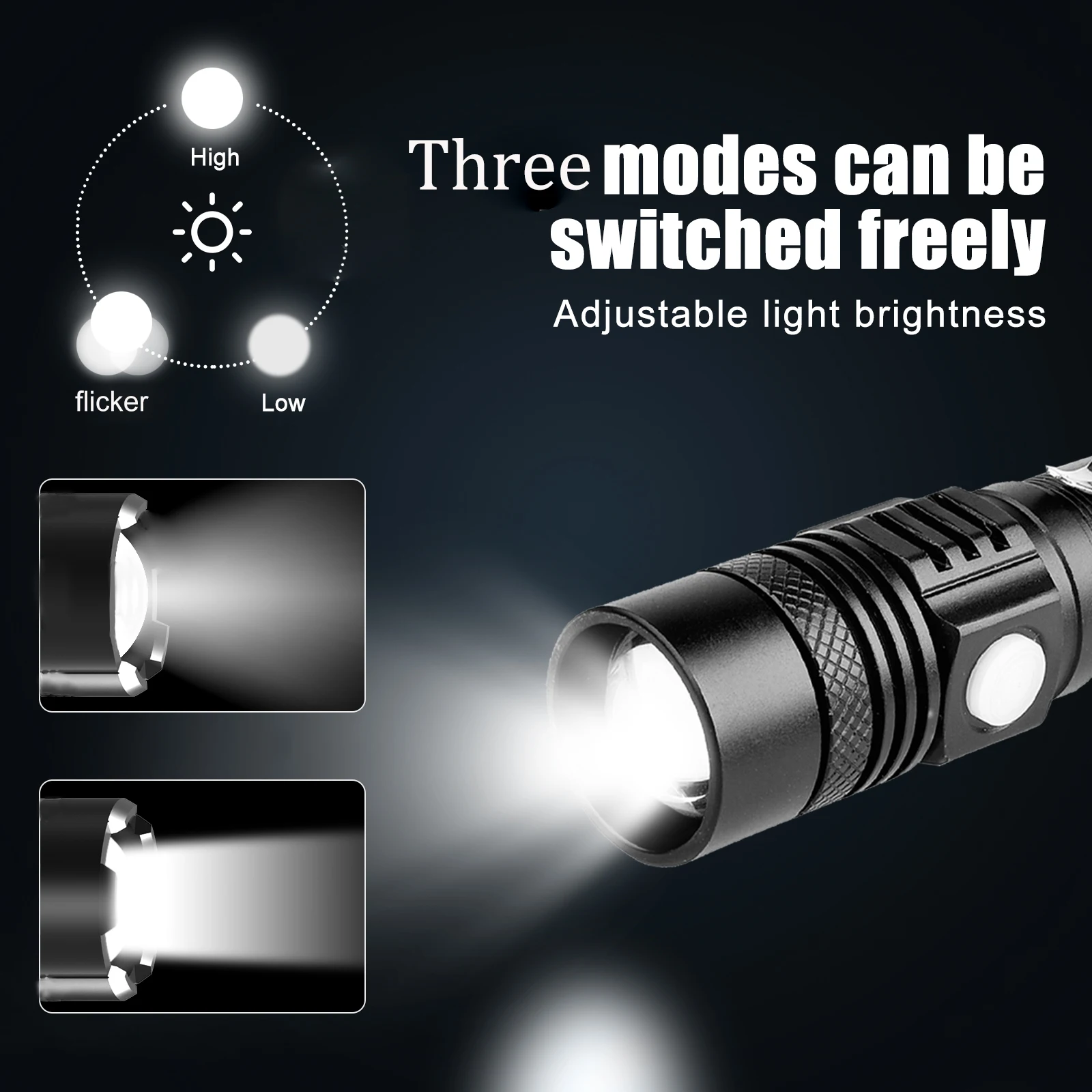 1. Multi-functional Flashlight: Features low battery reminder, 3 gears of lighting, telescopic zoom and micro USB charging, making it perfect for outdoor emergencies and tactical use.