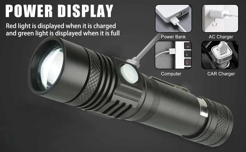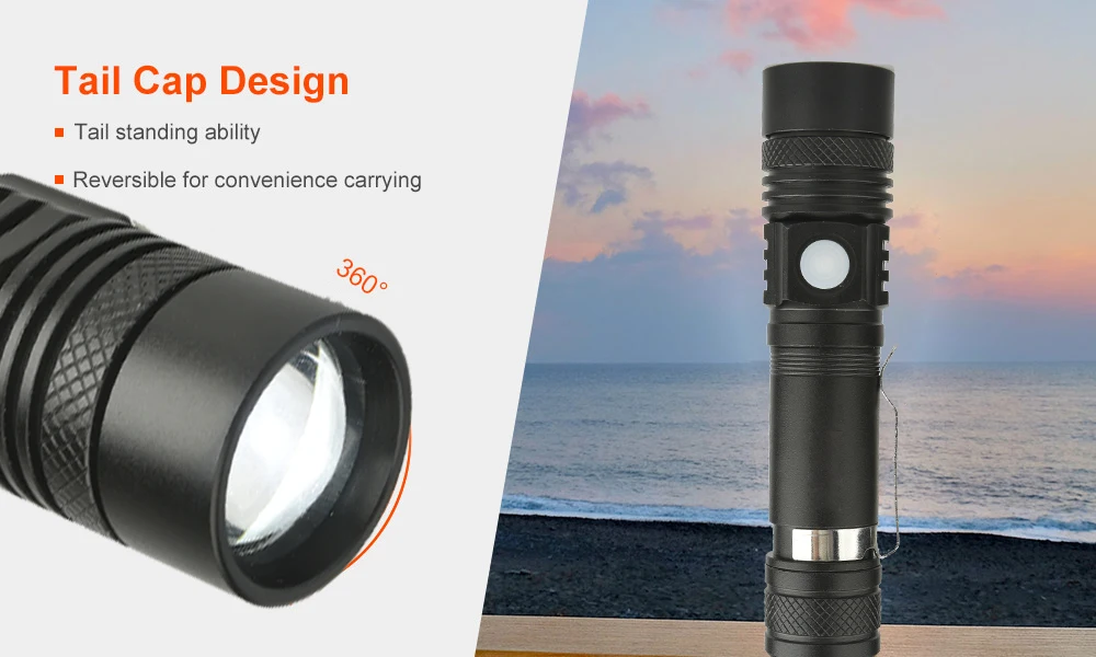 5. Rechargeable Battery: The micro USB charging function that can be recycled ensures that the flashlight is always ready for use without having to worry about replacing batteries.