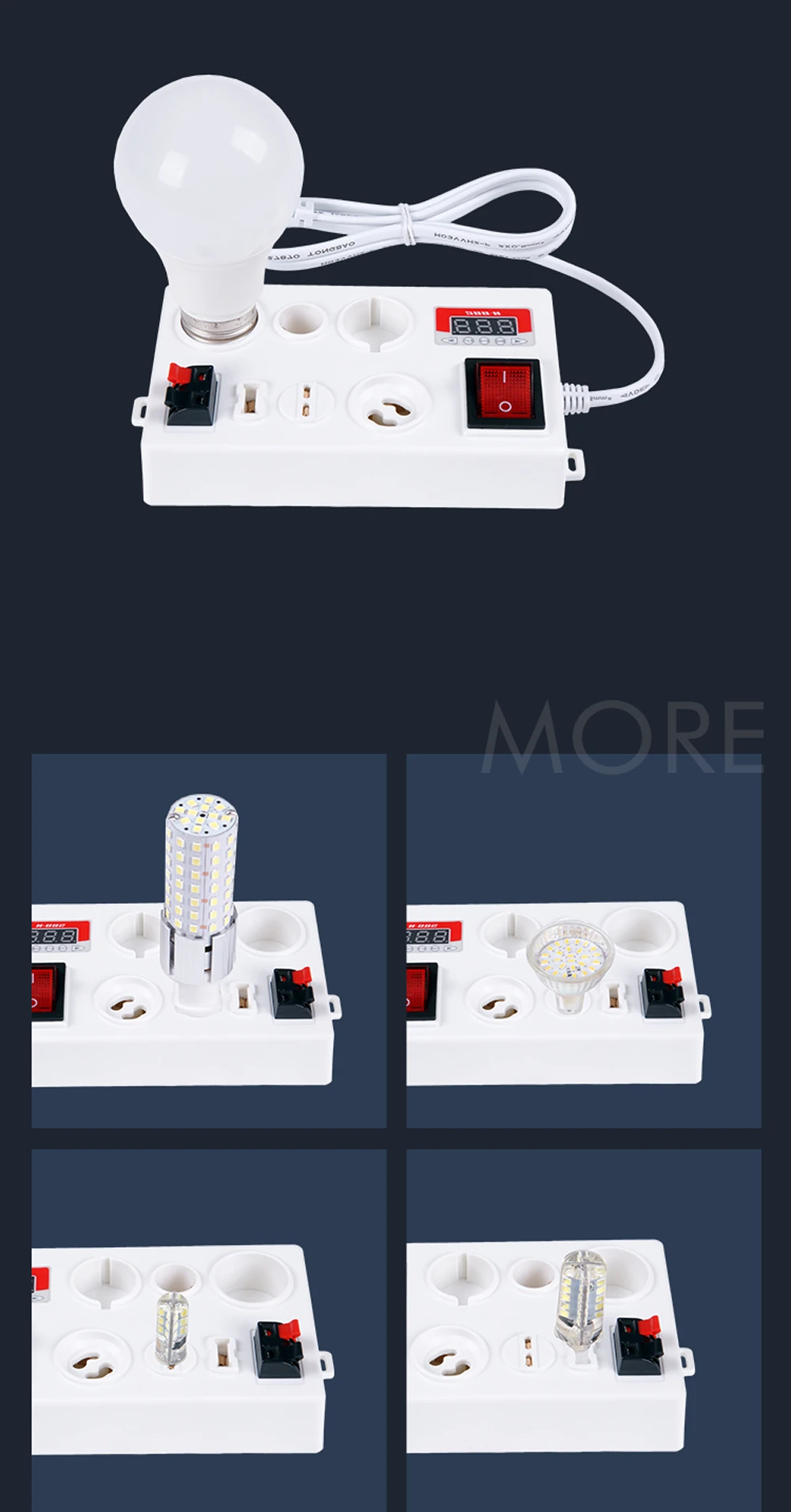 [Plug-in Interface] The plug-in type interface of the lamp holder makes testing more convenient and efficient, so you just need to simply plug your LED lamp into the correct hole and push the switch to test.