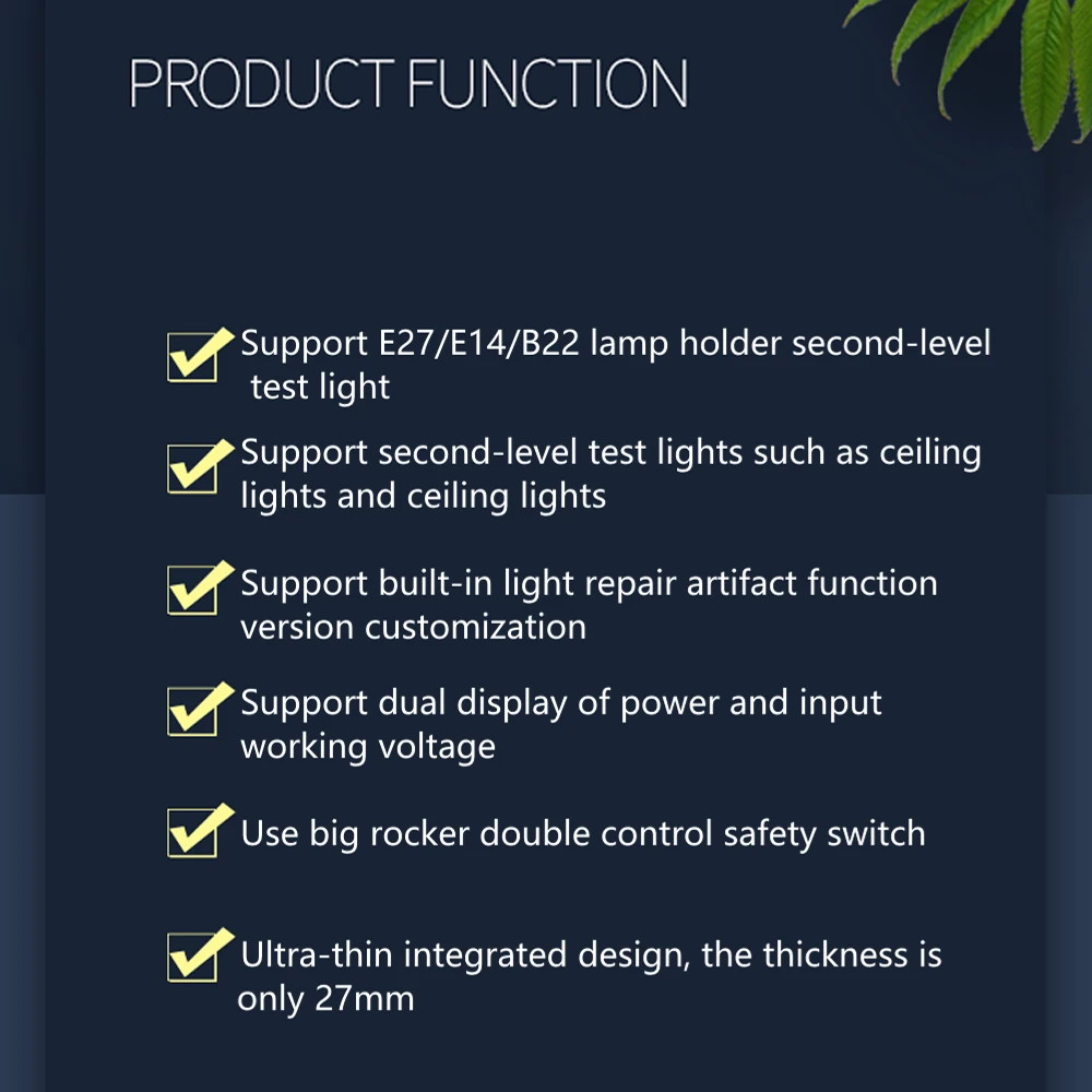 Supports E27/E14/B22 lamp holders second-level test lamps