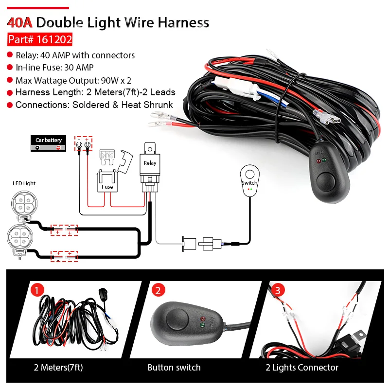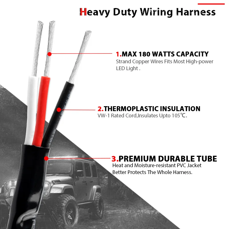7FT Extendable Wiring Harness:up to 10ft of wiring that is plenty of length to put it where you want.