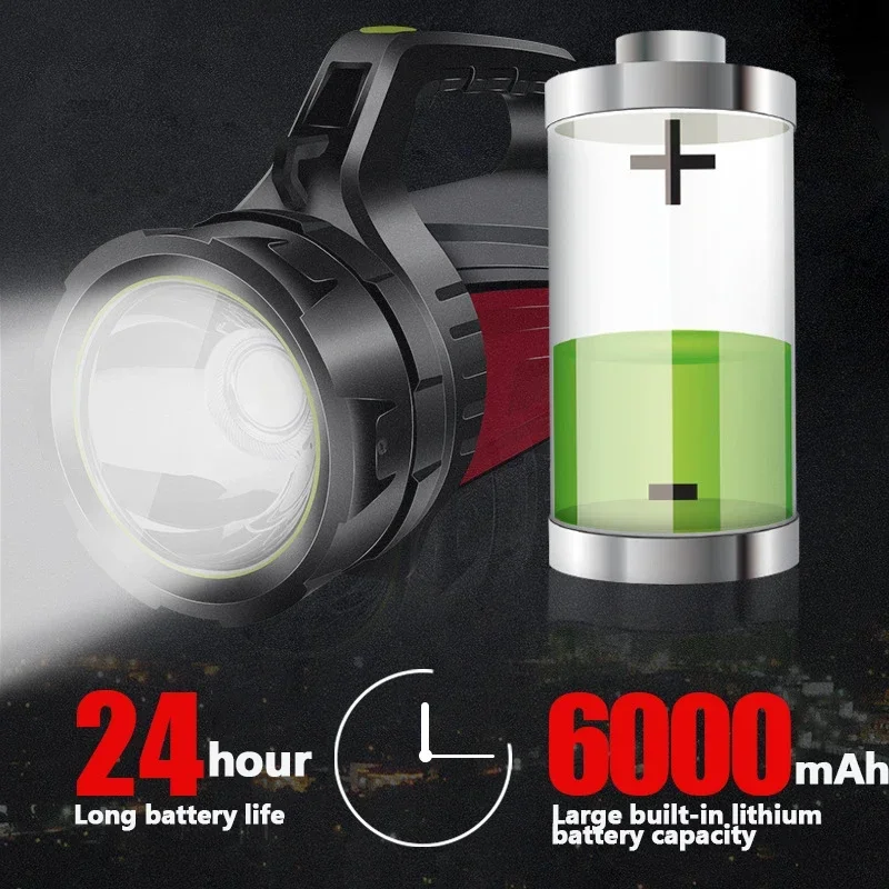 1.A HIGH-POWERFUL LIGHT WHERE YOU NEED IT MOST. Ultra-bright LED light with 2 brightness modes: High (6,000 lumens), Low (2500 lumens). At 6,000 lumens, it’s significantly brighter than many higher-priced spotlights and flashlights. Ultra-long illumination range up to 800 meters Makes it a long distance spotlight flashlight.Besides,it’s a powerful camping floodlight and warning light.