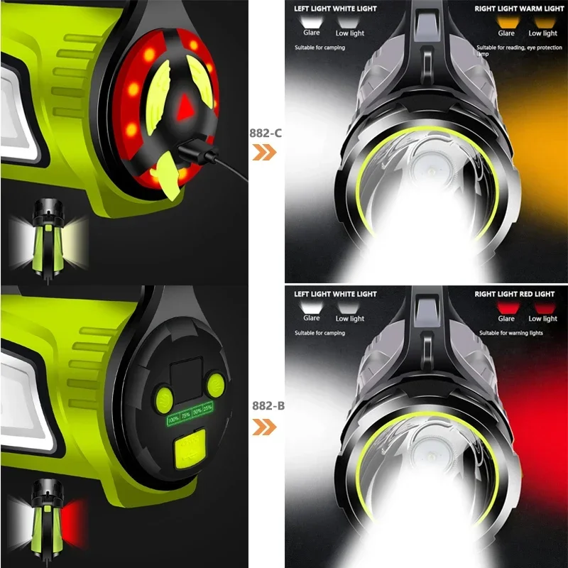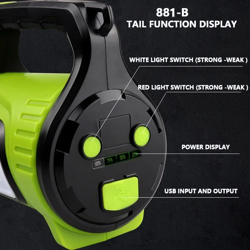 LED Rechargeable Search Light USB LED flashlight 2 side night light lamp hand Handle Spotlight Ultra-long Standby,WHite +RED LED