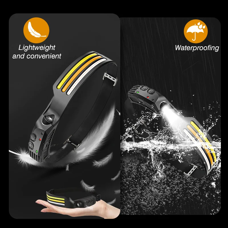 LED Sensor Headlamp USB Rechargeable XPE+COB Headlight Led Head Torch Camping Search Light Head Flashlight for Fishing Lantern