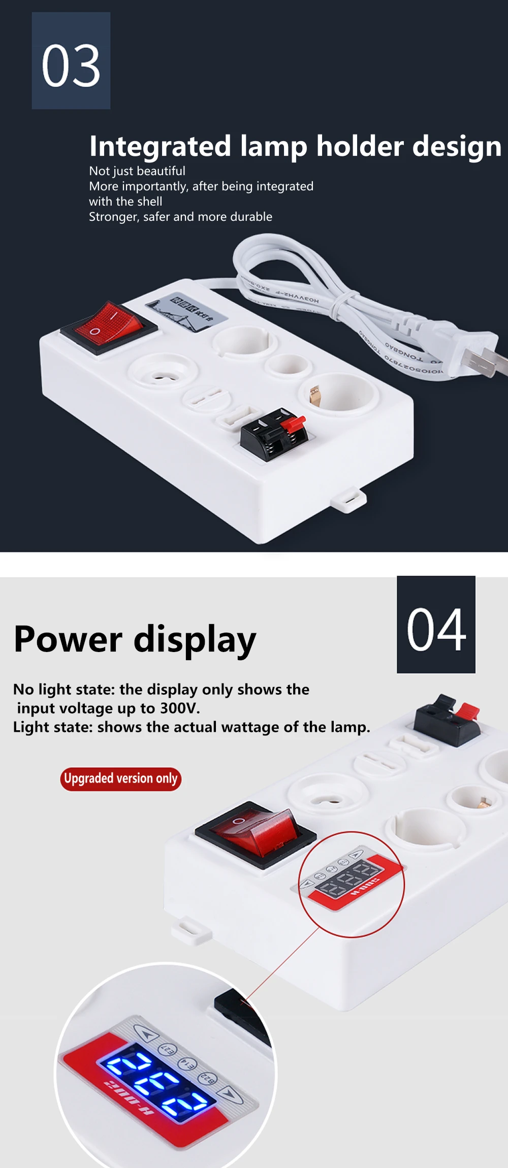 ■[Plug-in Interface] The plug-in type interface of the lamp holder makes testing more convenient and efficient, so you just need to simply plug your LED lamp into the correct hole and push the switch to test.