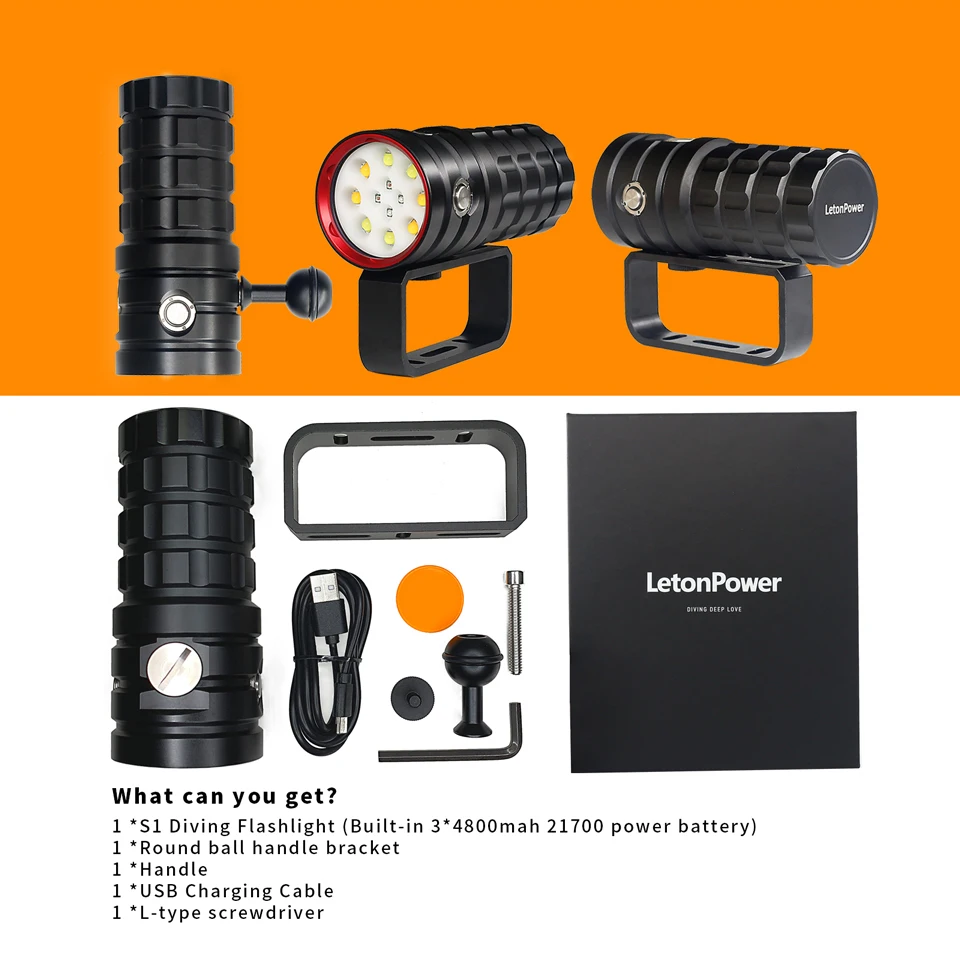 Letonpower is a diving lighting equipment brand located in Shenzhen, China, dedicated to the development of strong performance, stable quality diving lighting products, And achieved a greater technical advantage.The S1 is our latest dive light complement, with anoriginal all-in-onedesign that takes powerful performance and reliability to a whole new level.