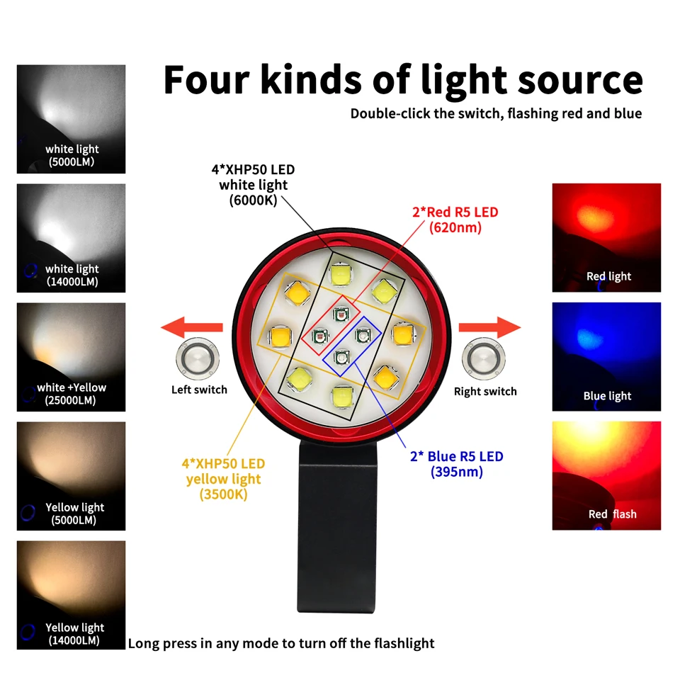 Mode 2: 4 *XHP50 LED white light (14000Lumens)