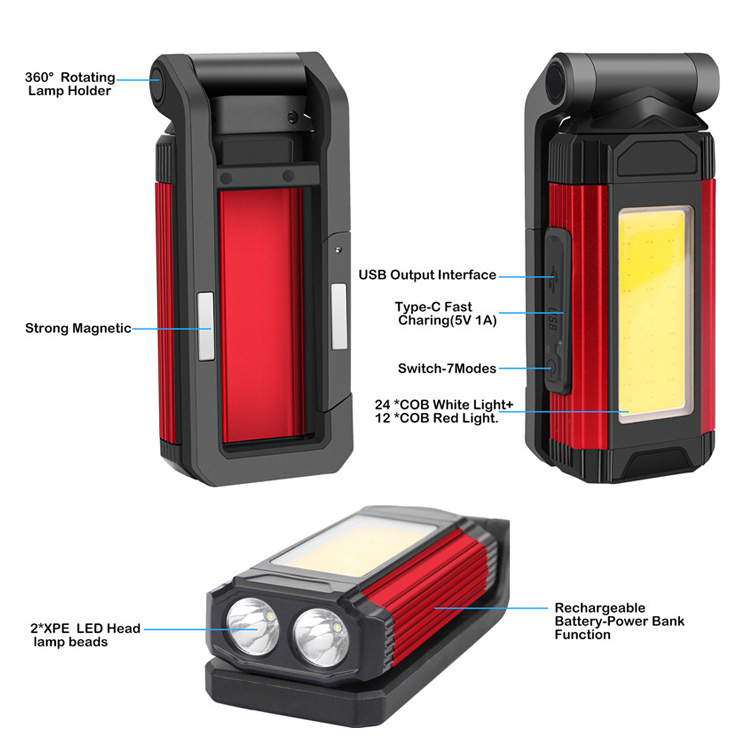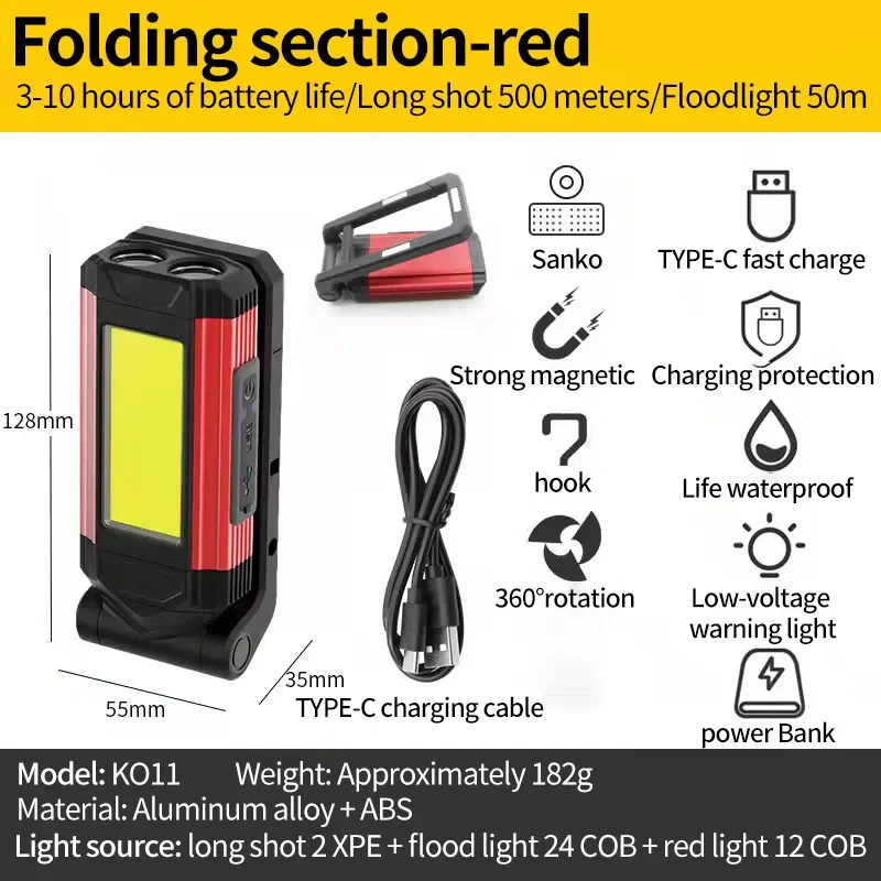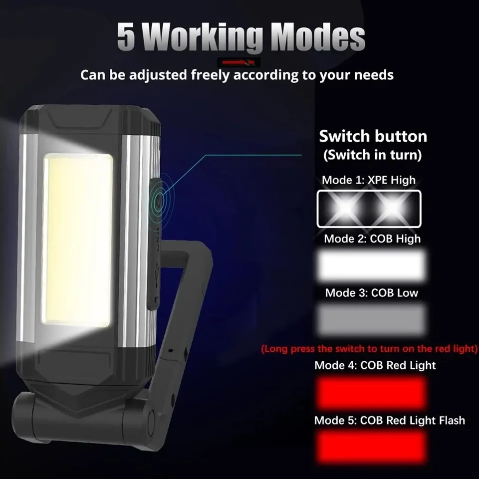 Magnetic Mechanic Light 000 Lumens Rechargeable Portable Work Light With Adjustable Stand Magnetic Base Hook Outdoor Flashlight