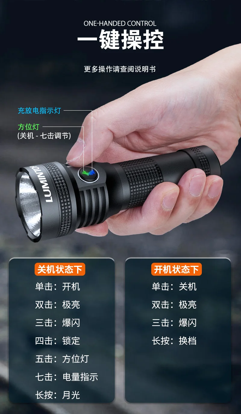 Hidden mode: Moonlight, Turbo, Strobe, SOS, Beacon.
