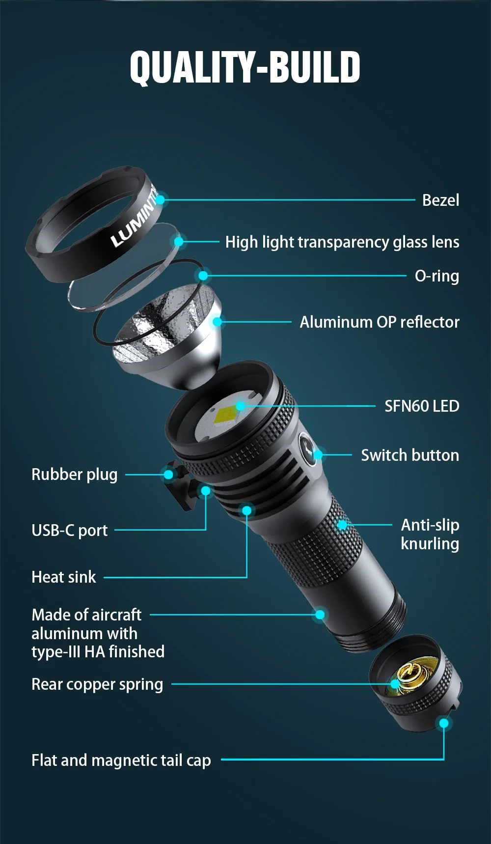 4. Strobe/SOS/Beacon: 3 clicks the switch to enter Strobe, and another 3 clicks to change the blinking modes(Strobe-SOS-Beacon).