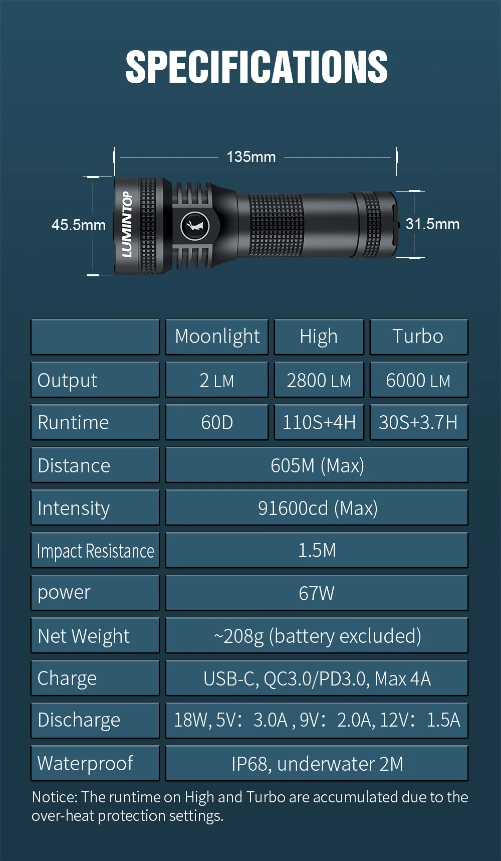 Lumintop AK26 magnetic tail version 26800 flashlight