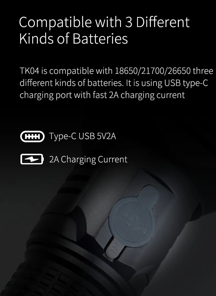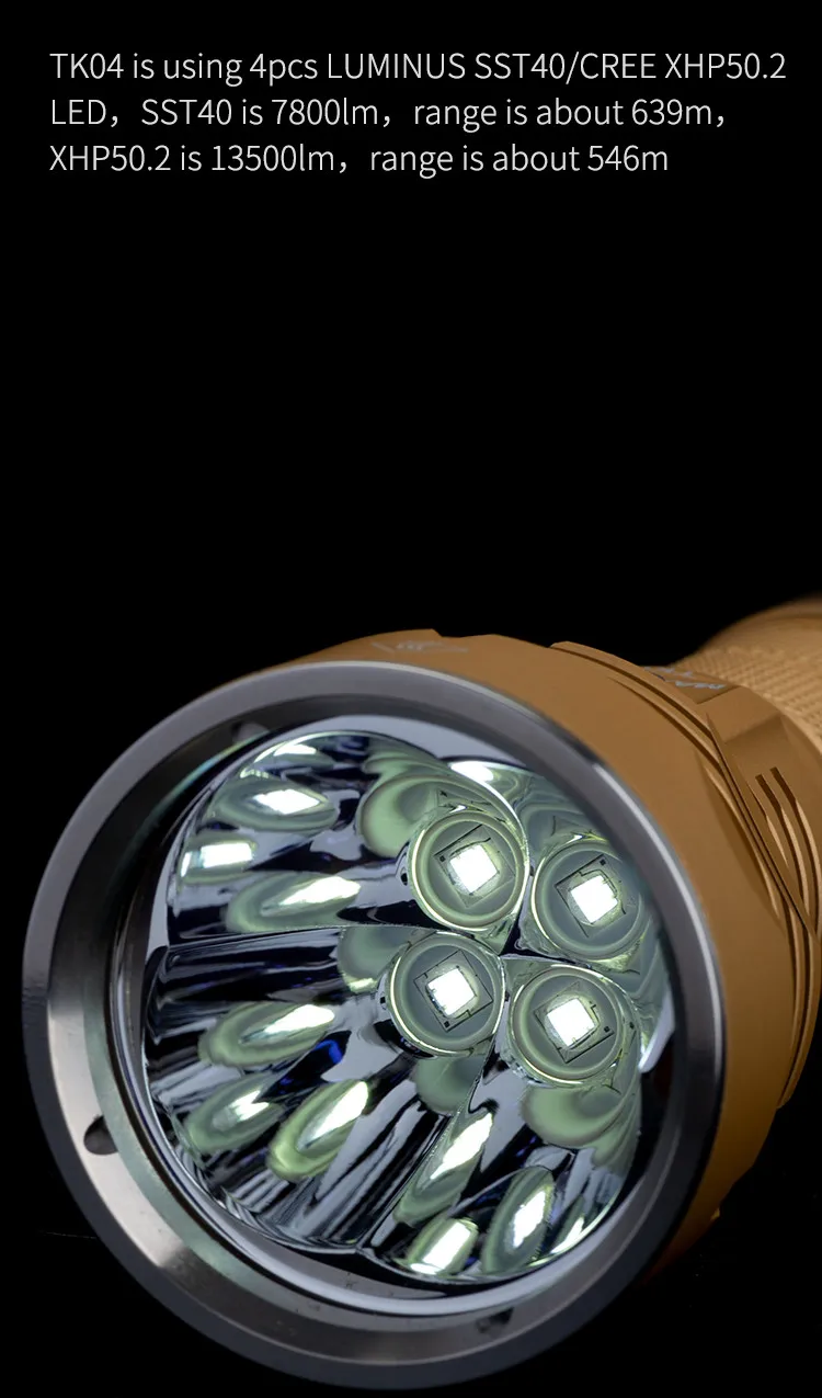 MATEMINCO TK04 High Power Flashlight TPYE-C Rechargeable 4 LEDs max 13500 Lumens 74600cd beam distance 546 Meters Search Torch
