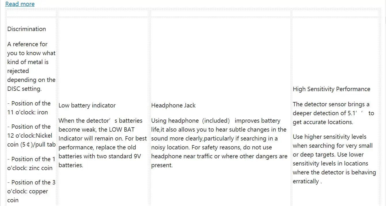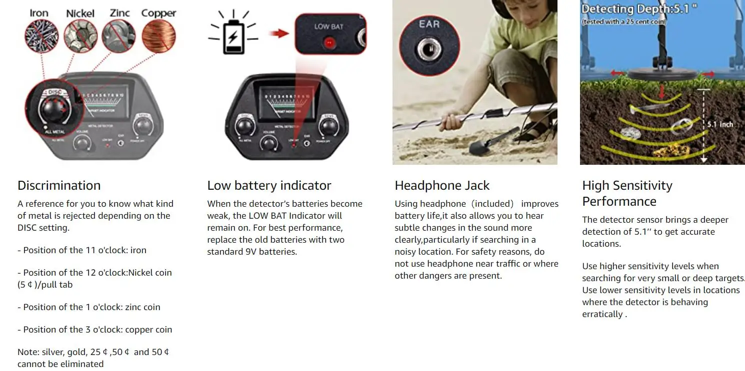 • 2 detection modes,DISC mode select filter out"garbage"metals.