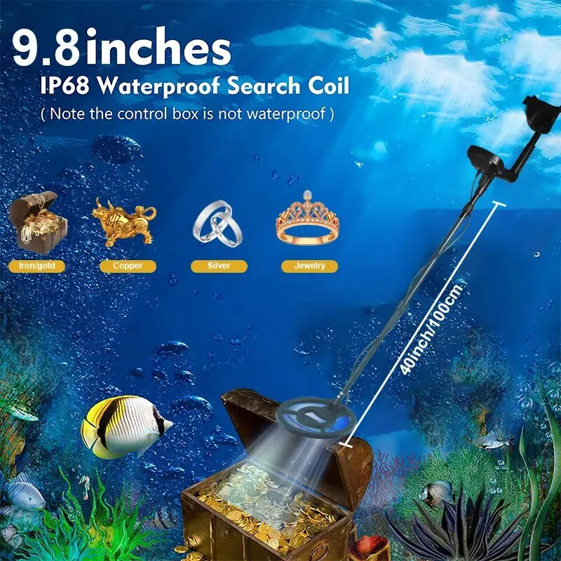 Waterproof Search Coil: can be operated in the shallow water, 10-inch (253mm) large size with high accuracy for more stable performance.
