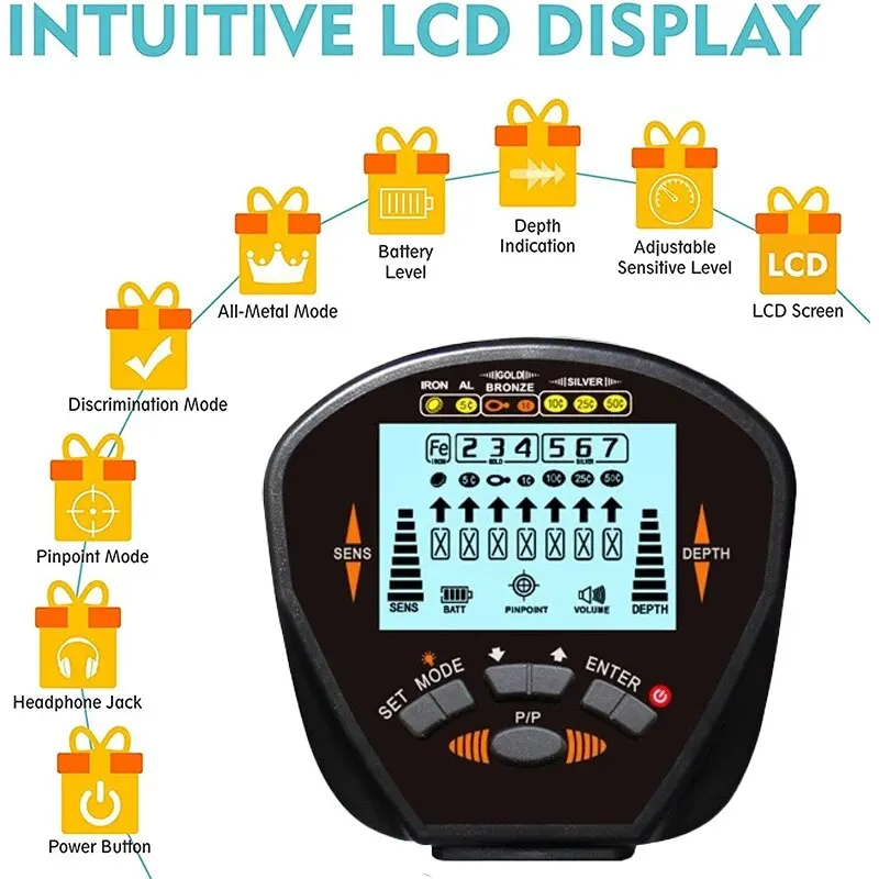 • Underground Depth Scanner :The MD830 Metal Detector has an underground depth scanner that can detect objects underground to a depth of 2 meters, making it perfect for treasure hunting.