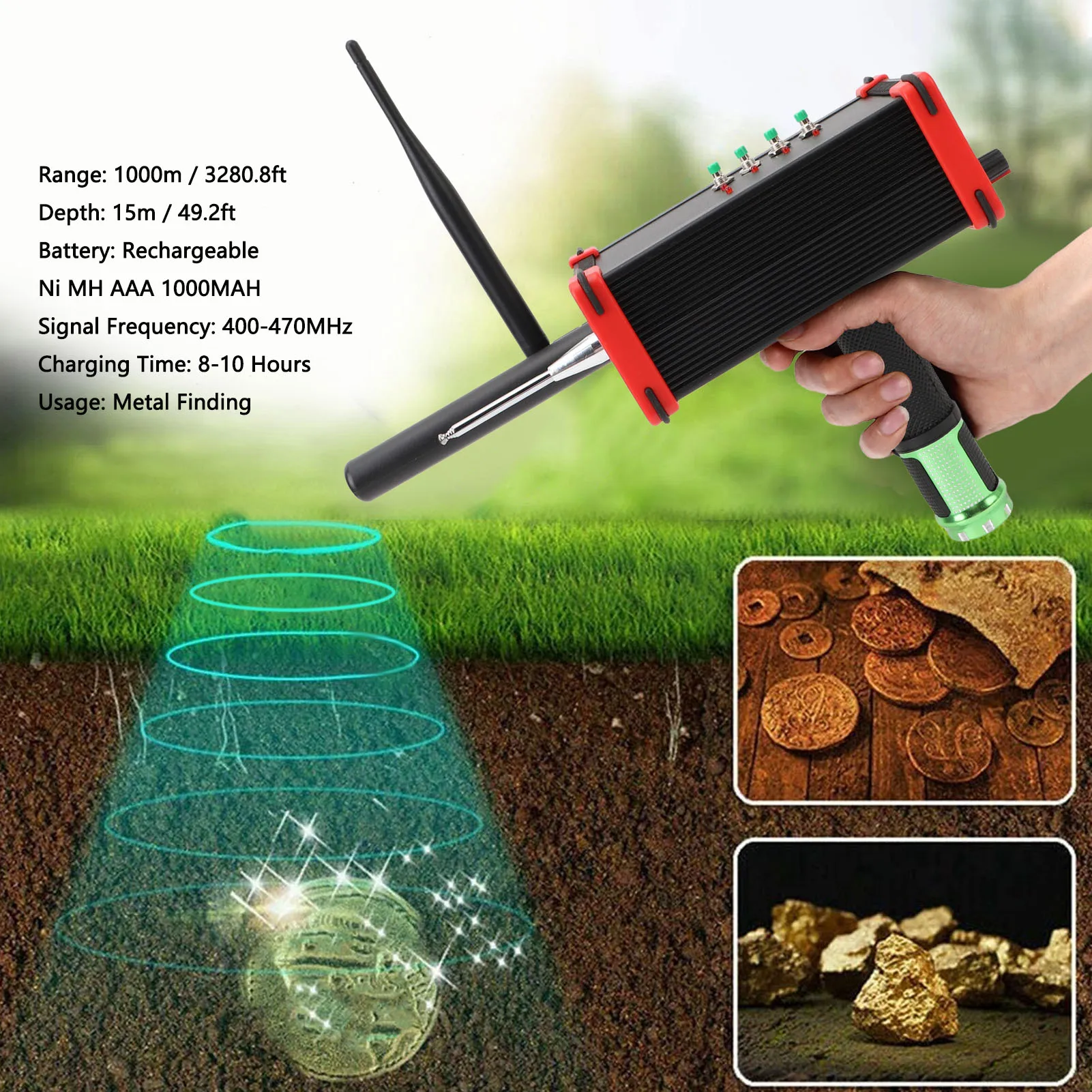 3. High Accuracy Metal Finder: 15 meter depth 1000 meter search range, this type of equipment has a long range search system and an accurate positioning detection system, which breaks through the traditional detection method. Helps you find your desired metal targets accurately in shortest time possible.