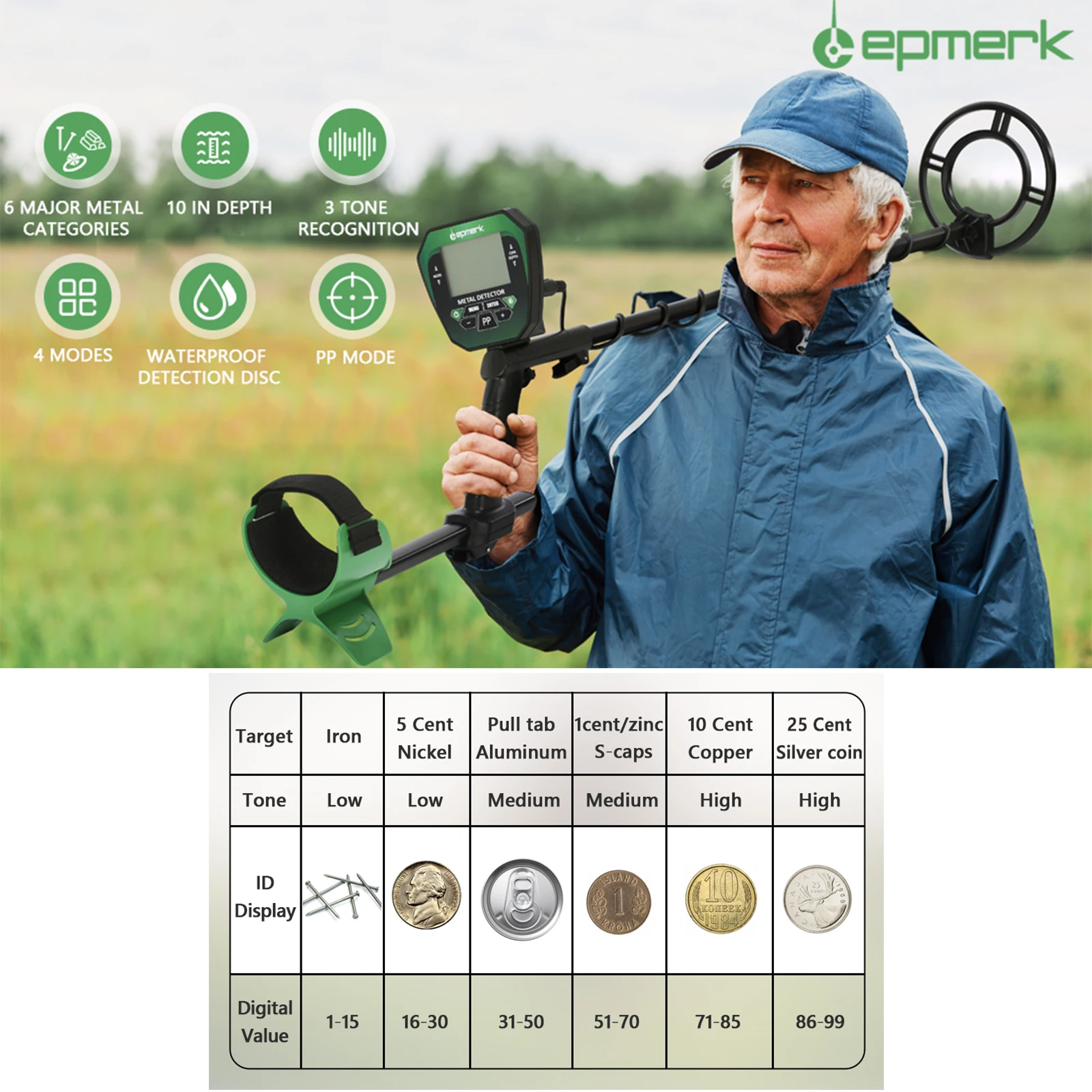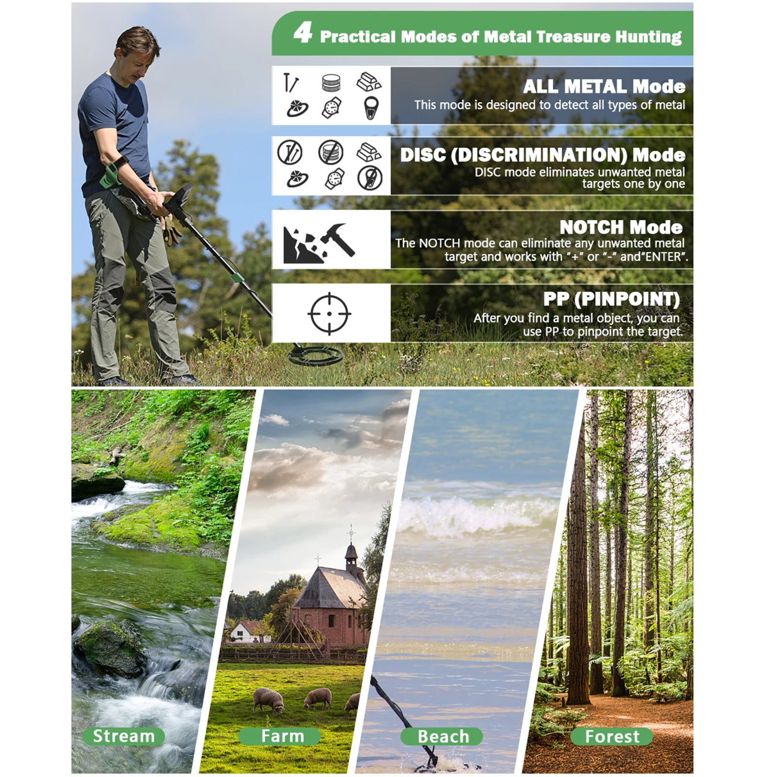 【4 Modes of Operation】Metal detectors has 4 distinct modes allow you to effectively search for the desired metals. All metal mode, identification mode, reject mode, locate mode, we are equipped with a full range of accessories and you can start your treasure hunt as soon as you open the package.