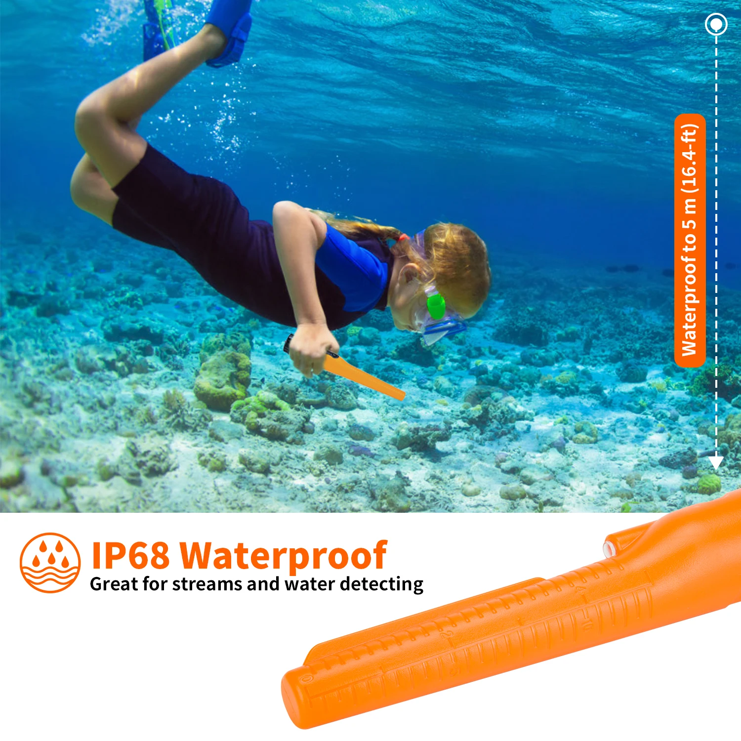 IP68 Waterproof Level: 16.5 Feet Full body waterproof.Leak Water.Free Refund.For One Yuan RMB Coin(Diameter 2.5cm).Detection Distance is 4-4.5cm.GP-POINTER only have 3.5-4cm.