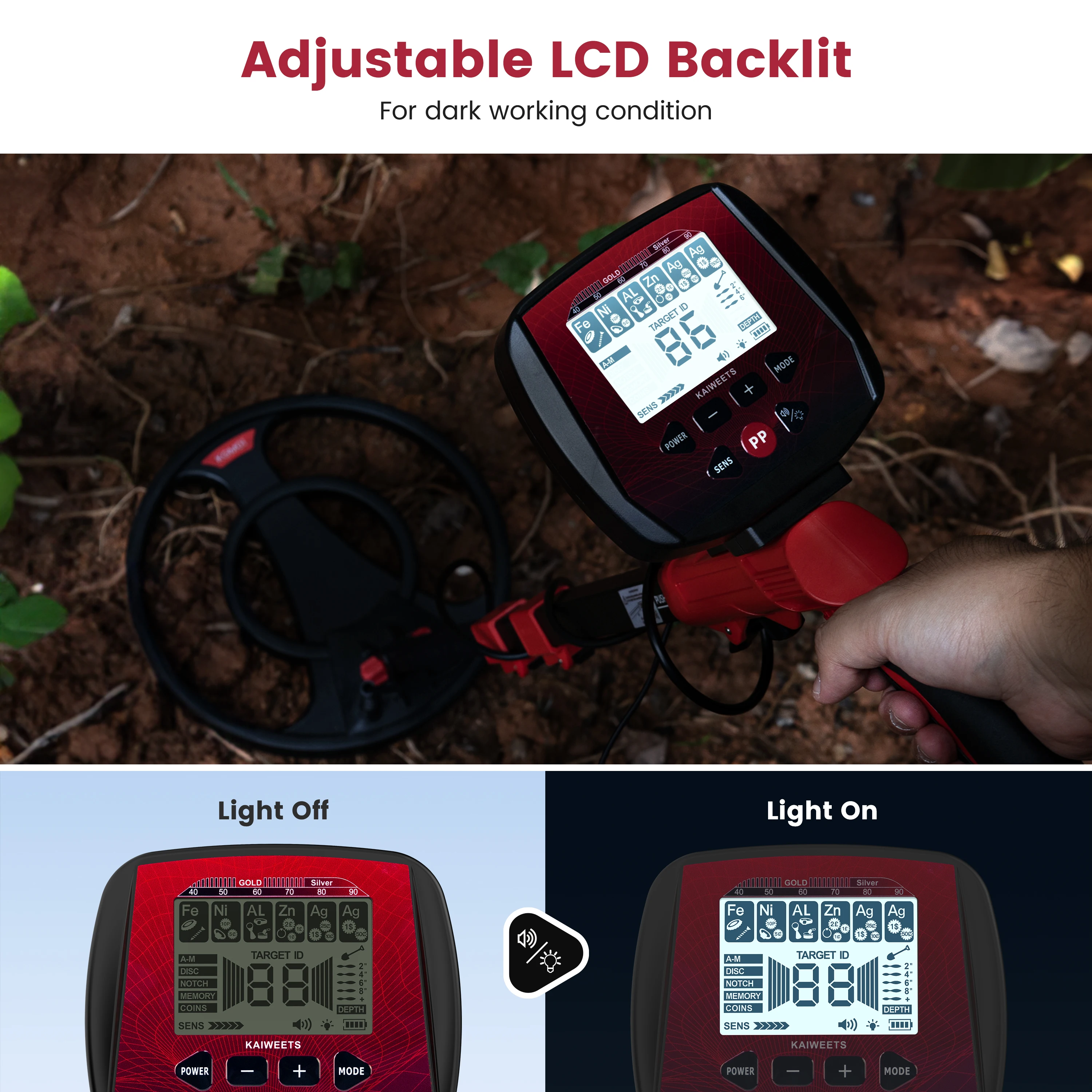 The backlight function enables easy treasure hunting in low light or nighttime conditions. Button operation, 3 display modes to easily identify the type of metals you are detecting, displays digital, image, and sound. It’s convenient for you to get the type of metal target, depth, recognition, sensitivity level, and operating mode, which lets you detect more efficiently.