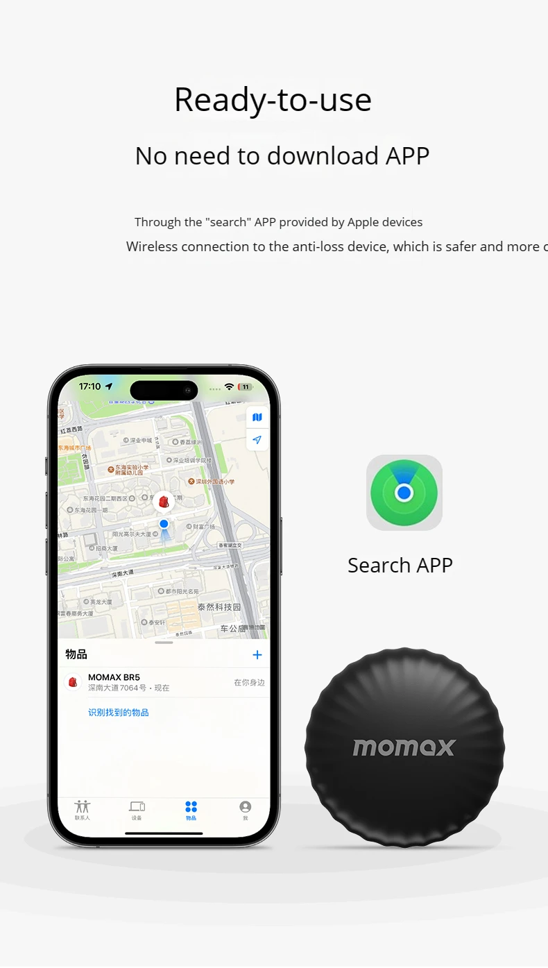Momax Pintag anti-loss locator key search and tracker Apple Find my Tracker wireless anti-loss device