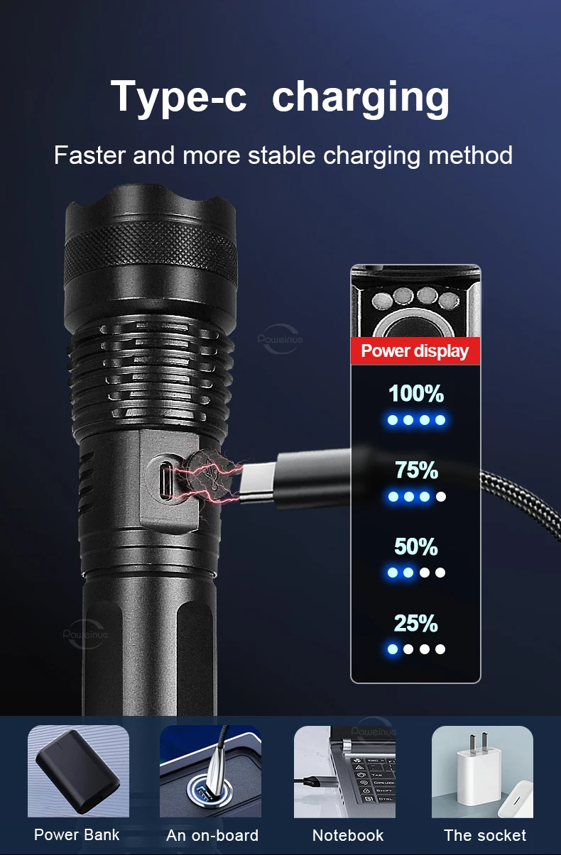 – Lighting time: 1*18650 battery 4 – 10 hours; 1*26650 battery: 5 – 12 hours