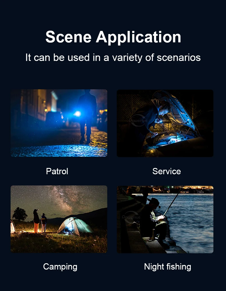 ♦ Use environment: Camping, Hunting, Fishing, Home lighting, Rainy day search and rescue, Field adventure, Emergency help.