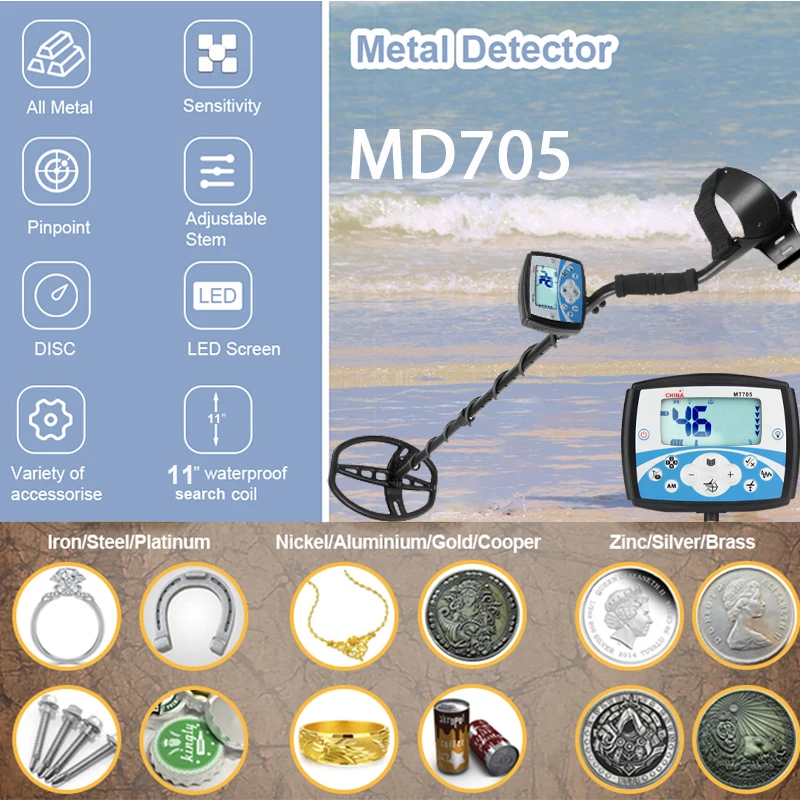 MT705 Metal Detector Professional Underground Gold Scanner Depth 2.5m Treasure Hunter Waterproof Search Coil Pinpointer hot sell