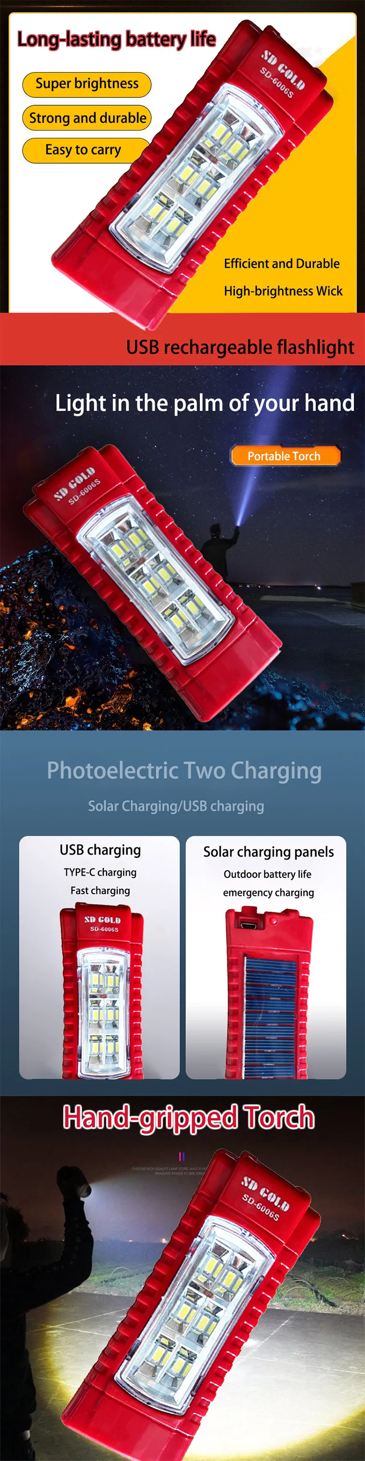 • Flashlight type: Search, home, emergency