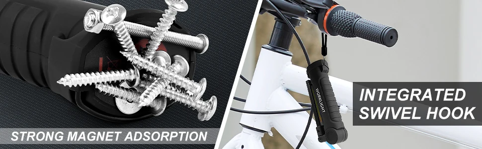Swivel hook & magnet base for convenient, hand-free use. 360 degree rotate provide multi-angle illumination, free your hands and improve work efficiency. Many customers feedback say the magnetic base is strong when working on cars without worrying about it falling off.