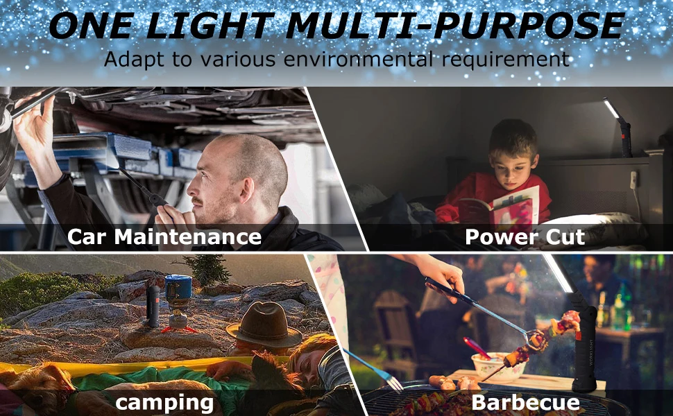 This well made work lights can be used for car maintenance, home lighting, power outage, emergency lighting, travel, camping, hiking, etc.