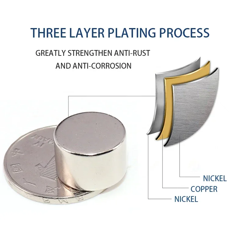 ▲The best coating-Ni+Cu+Ni three-layer coating. The best coating available, providing shiny and rust-resistant coating The steel cup provides protection for the magnet and helps prevent chipping or cracking.