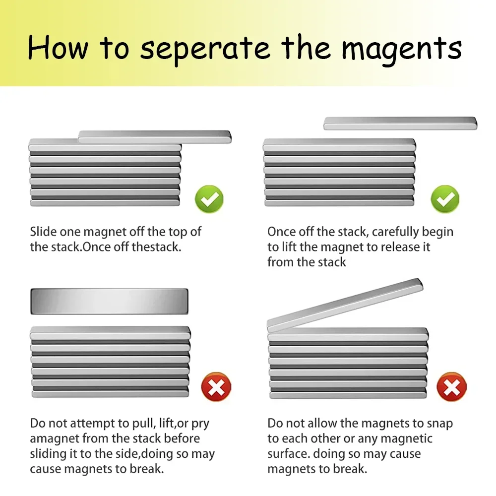 2: Neodymium magnets are very fragile and easy to damage, please handle with care. Powerful magnets are made of rare earths at high temperature, which cannot guarantee 100% perfection. Its small flaws will not affect its performance and use, and those who mind should buy with caution.