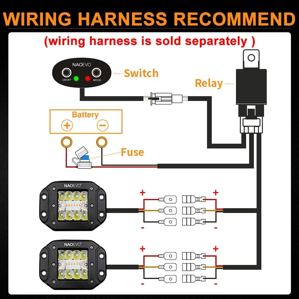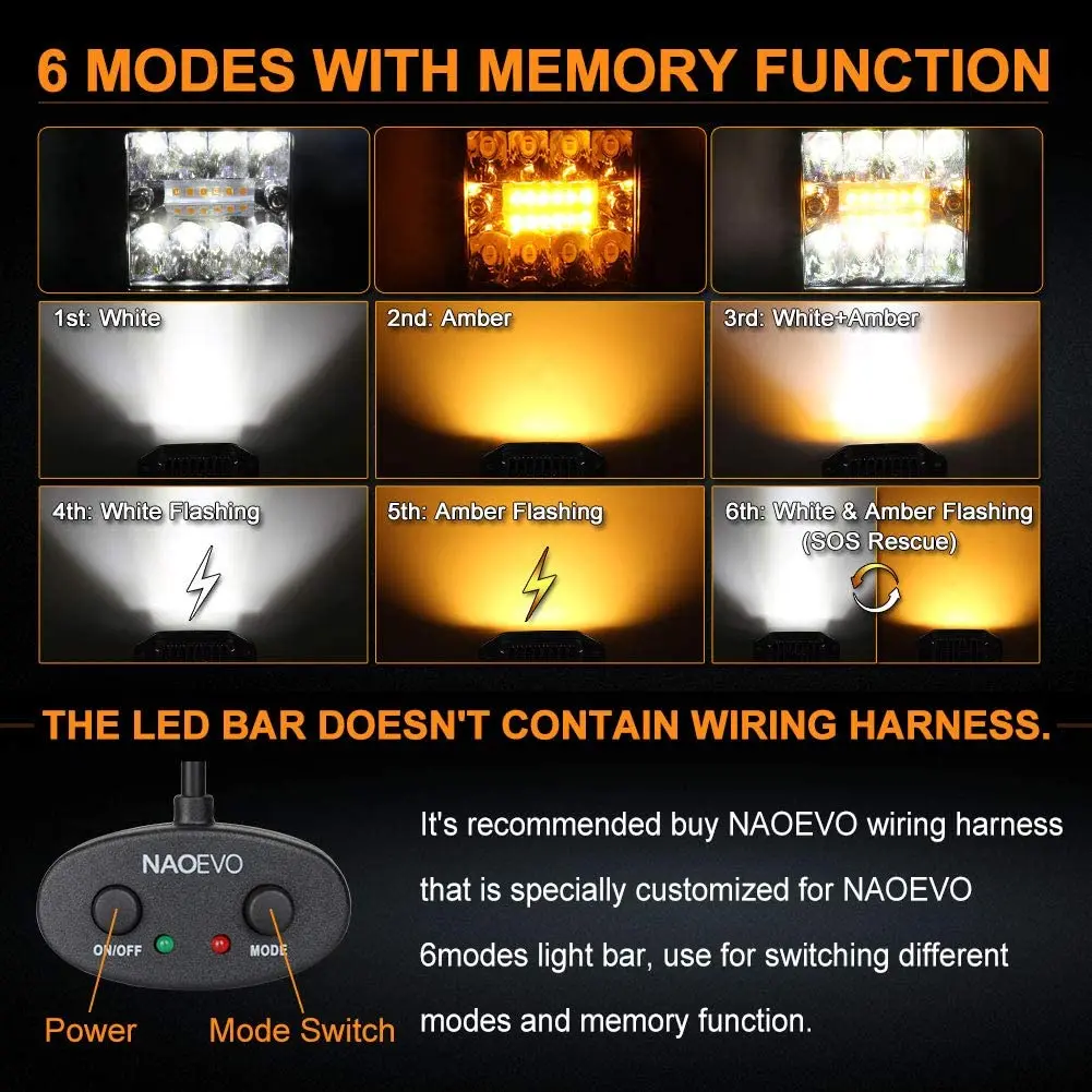● The wiring harness is specially customized for NAOEVO 6 mode light bar.