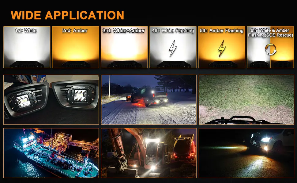 ●NAOEVO Work Lights has unique 6 modes, regulate mode in turn by switch of the lights