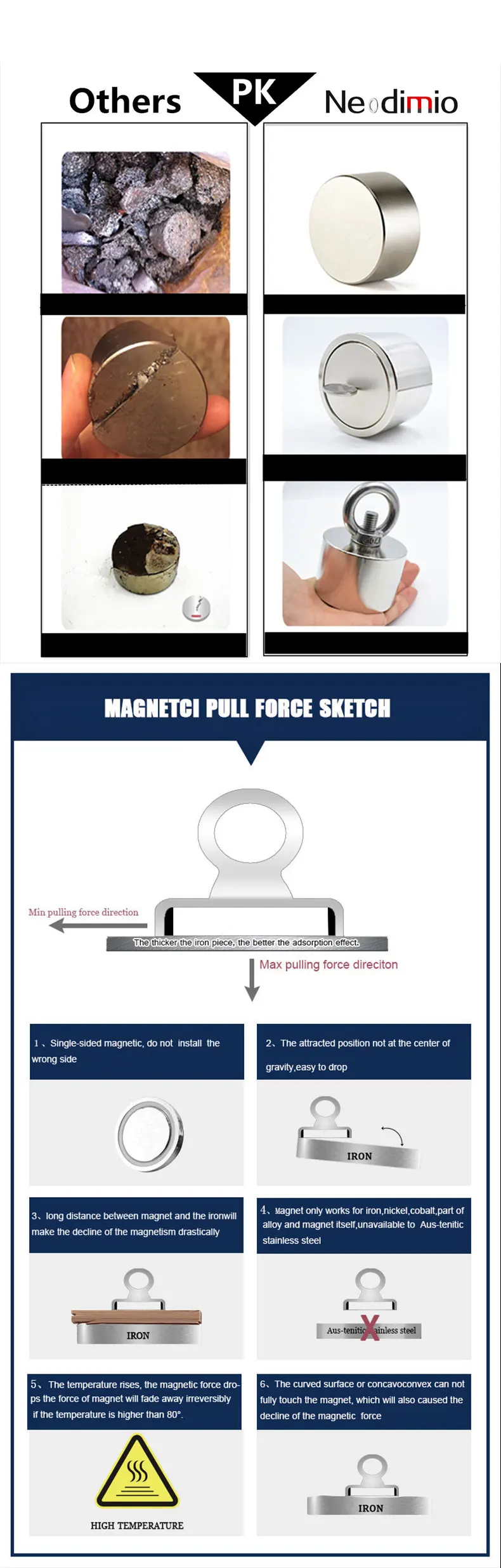 3.The pulling force will maximize when pulling from vertical direction with magnets surface.