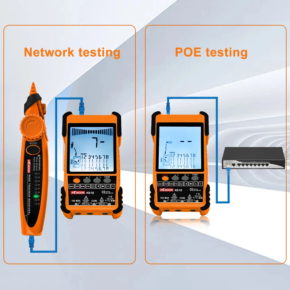 Multifunctional Cable Tester: This cable tester has the function of analogue tracing, cable mapping, PoE voltage measuring, digital tracing sensitivity adjustable, etc.