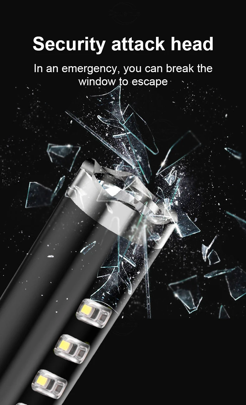 [Material] —The whole body is made of high-grade aviation-grade aluminum alloy, the lamp head adopts a lotus-shaped design, and the tail uses a window-breaking hammer, which is the hardest! 100% successful defense!