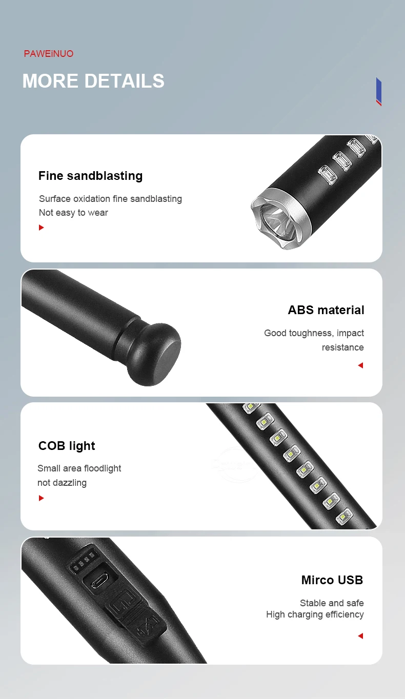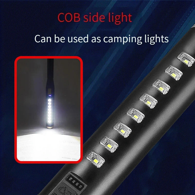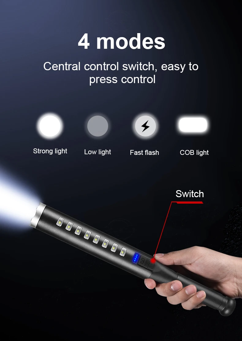 4 Modes : Strong Light-Low Light-Fast Flash-COB Side Light