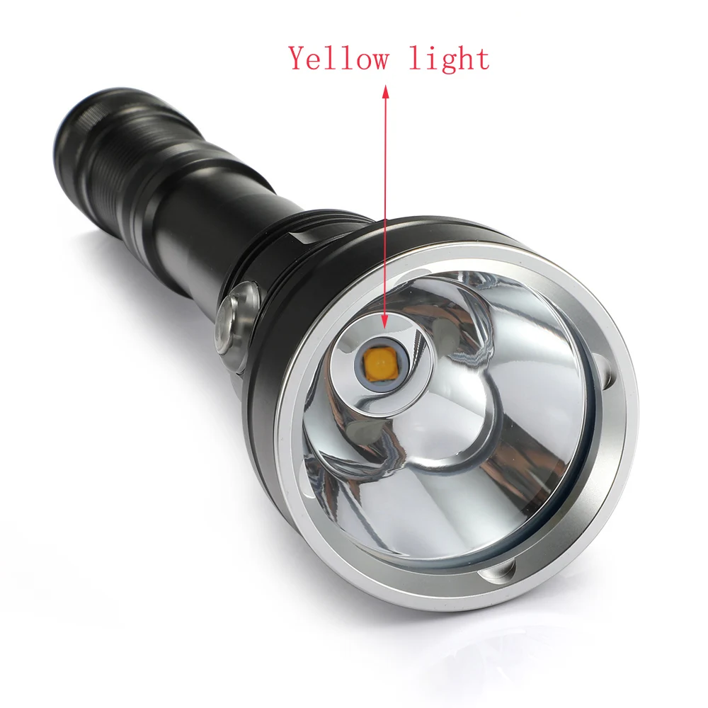 New Powerful Waterproof Scuba Diving Flashlight XHP70.2 Yellow/White Light 6000LM Underwater Tactical Dive Torch 26650 Battery