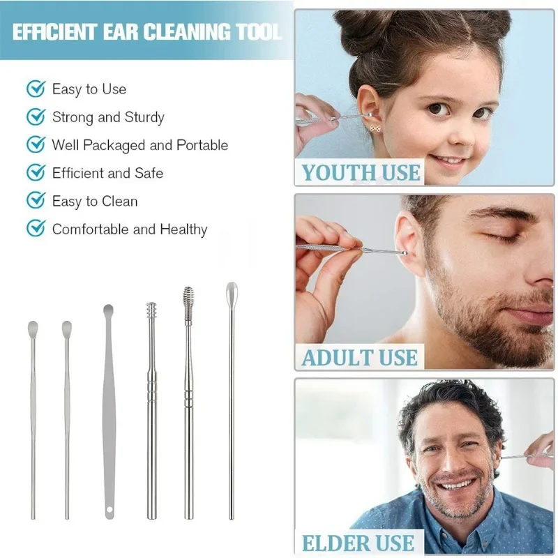 Compared with the traditional cotton swab, which may push the earwax into the ear, our earwax removal kit have several improvements. The ear pick in scoop shaped can remove the earwax easily and effectively. The ear pick in spiral design can relieve itching by massaging your ear canal.