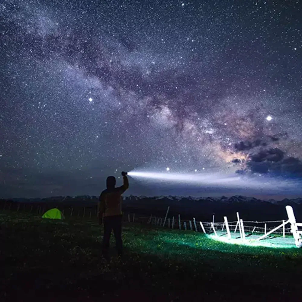 –2000 Lumens bright lighting, 380 distance irradiation, 5000 mAh 26650 rechargeable battery, 140 hours of battery life.