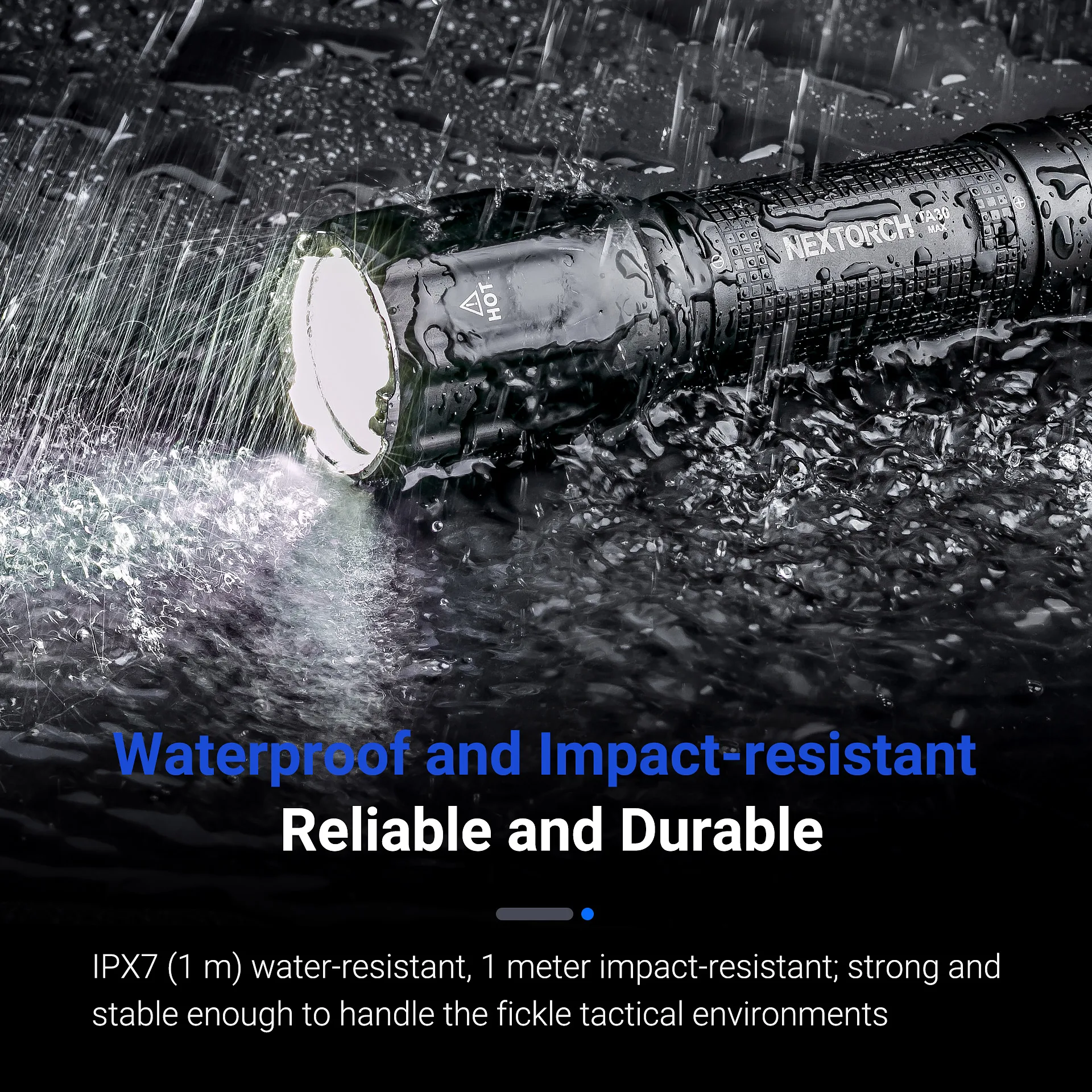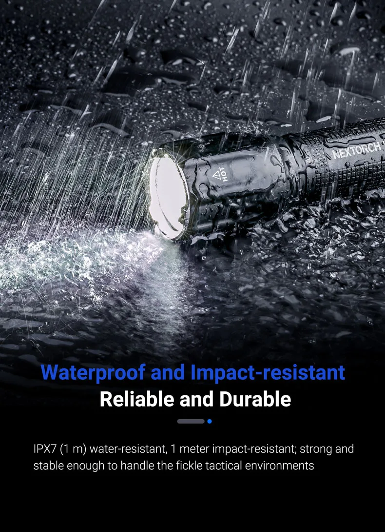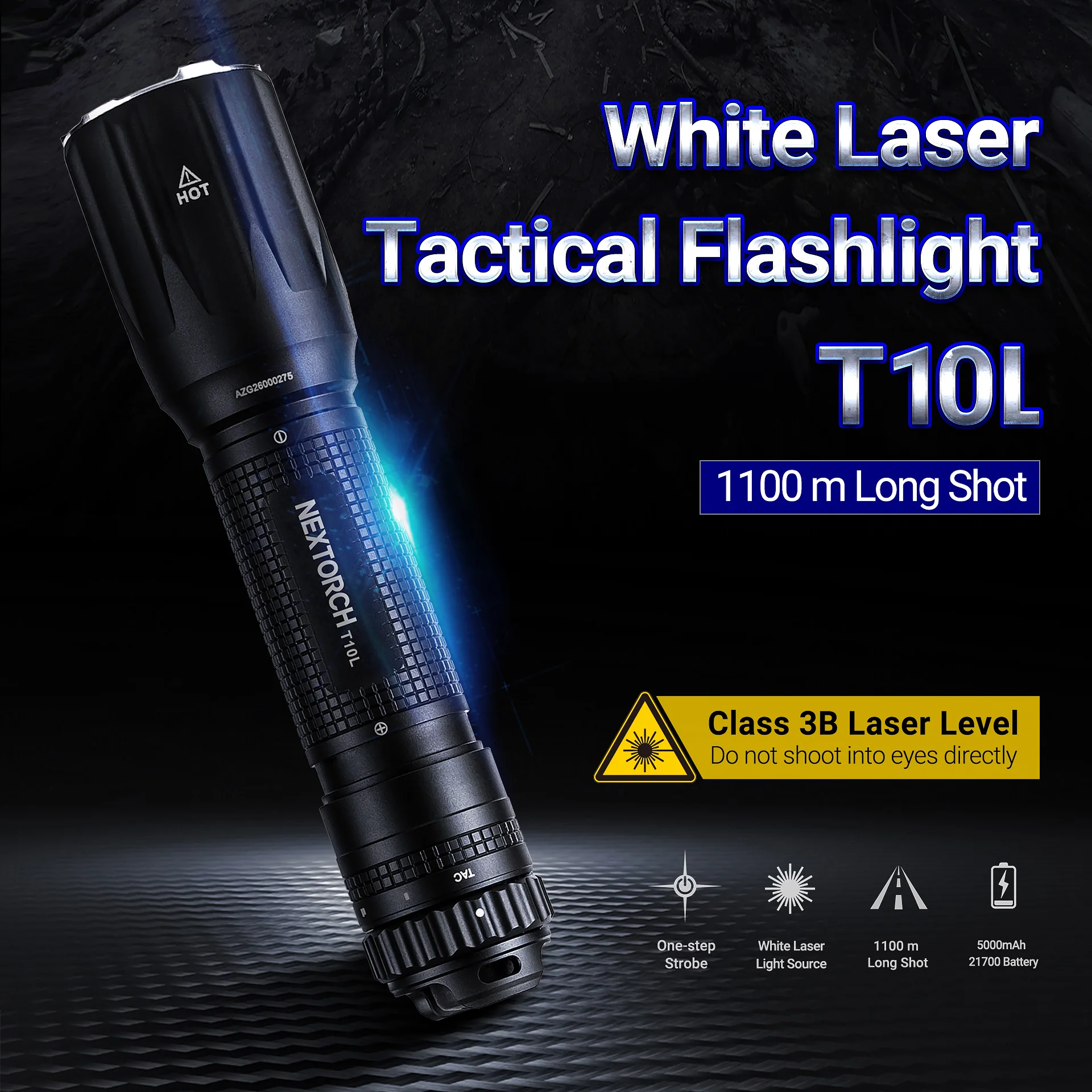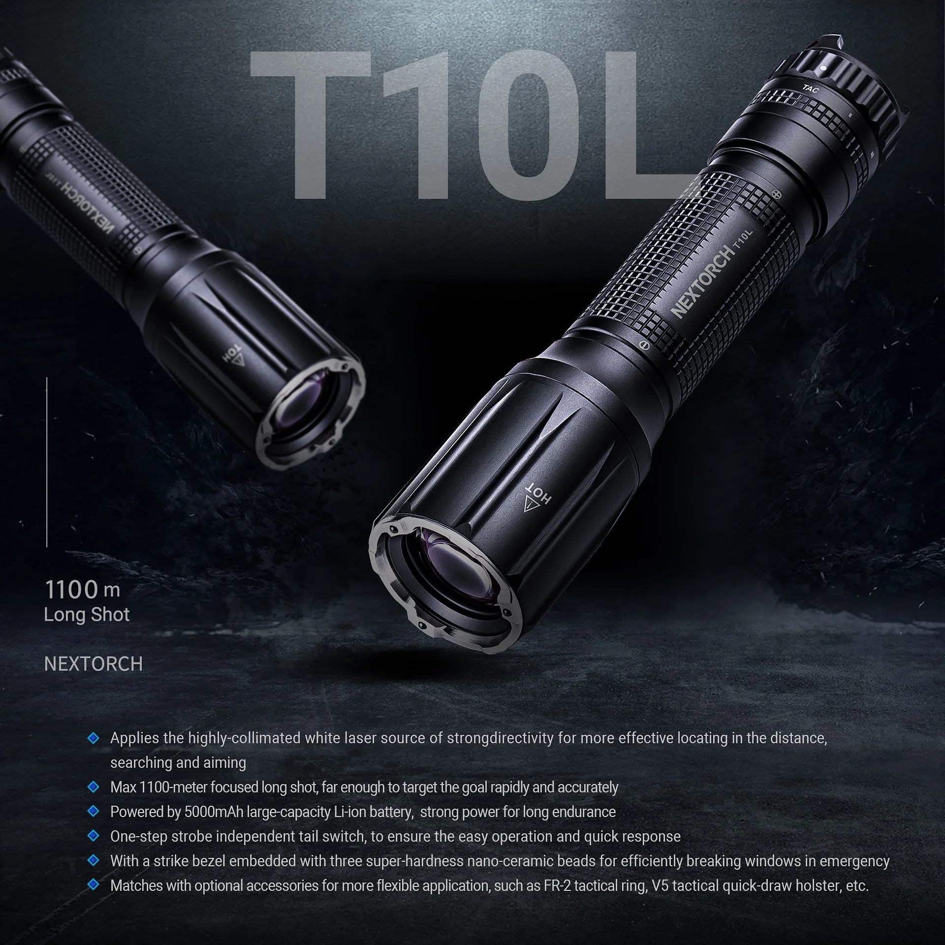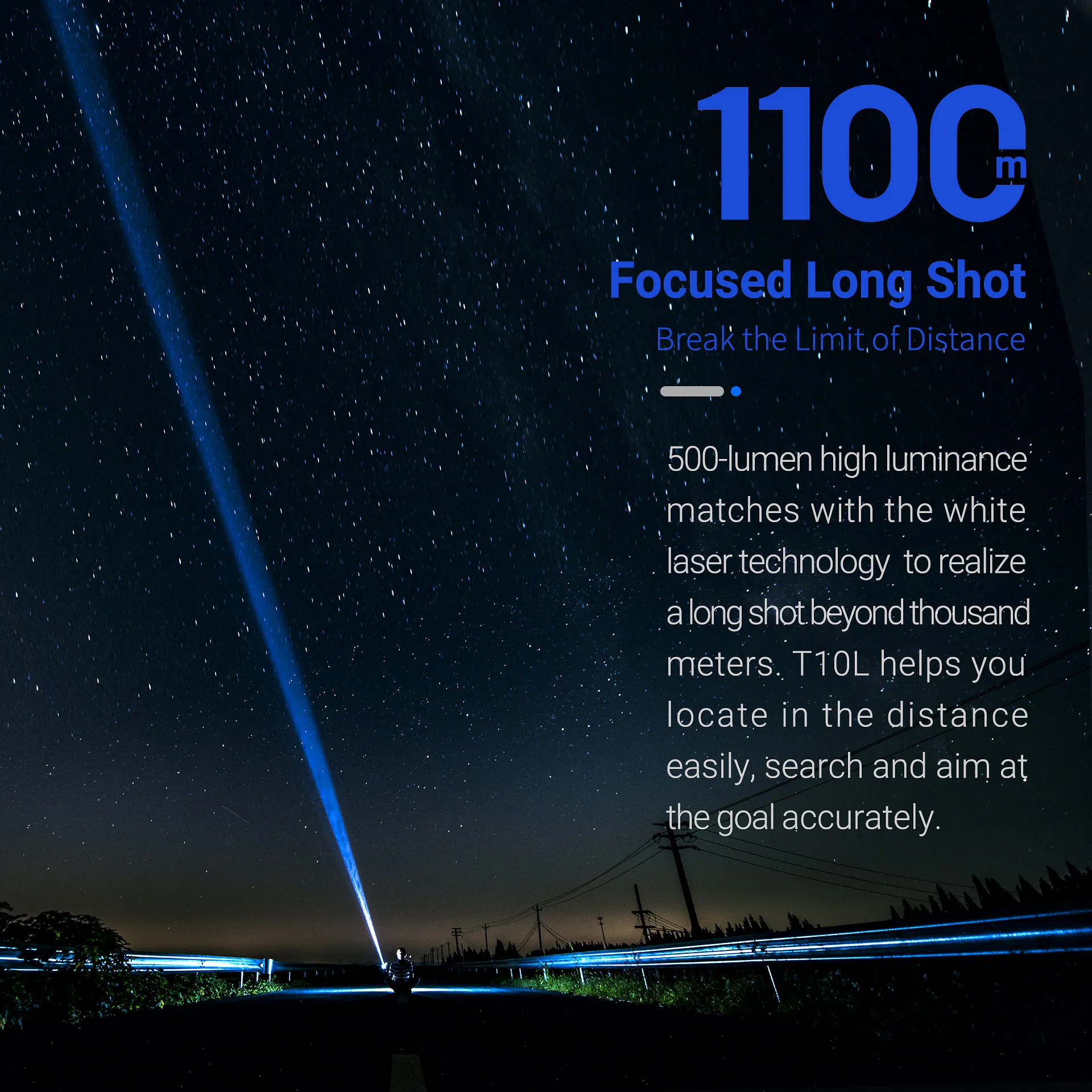 T10L has a long-shot laser for more effective locating target, which can be a perfect searchlight. It has five modes, including high, medium, low, momentary on and strobe. The maximum output offers 500 lumens, with the beam distance of 1100 meters. You can aim at your target precisely.