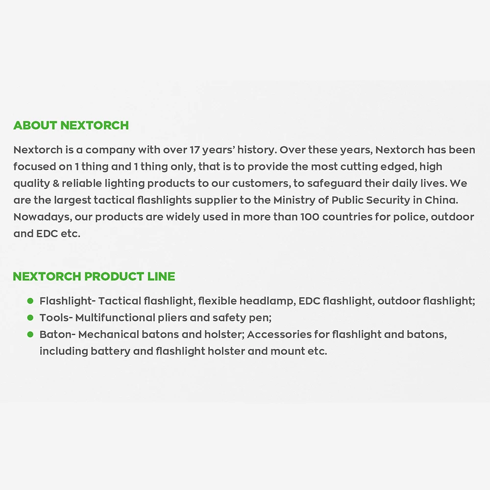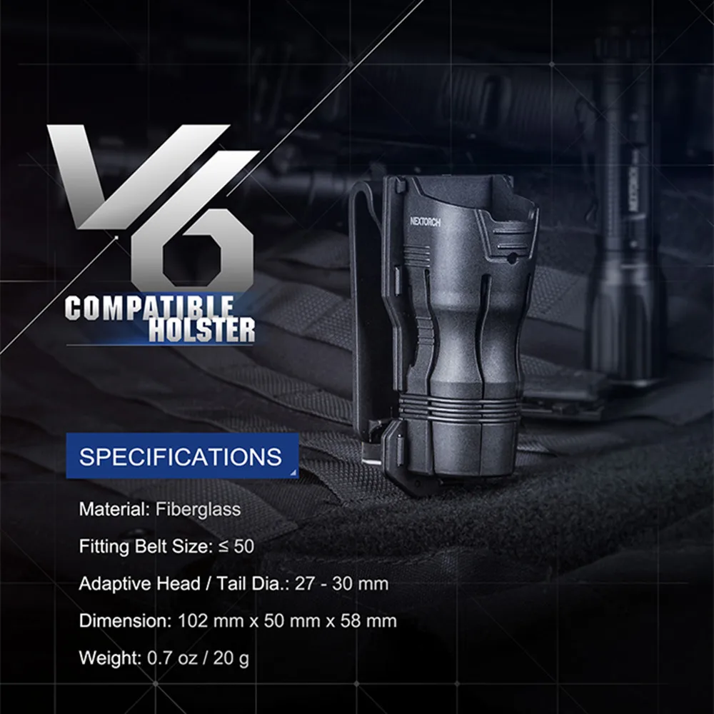 It is compatible with different kinds of holster at Nextorch, such as FR-2, V5, V51, V6 and V61.