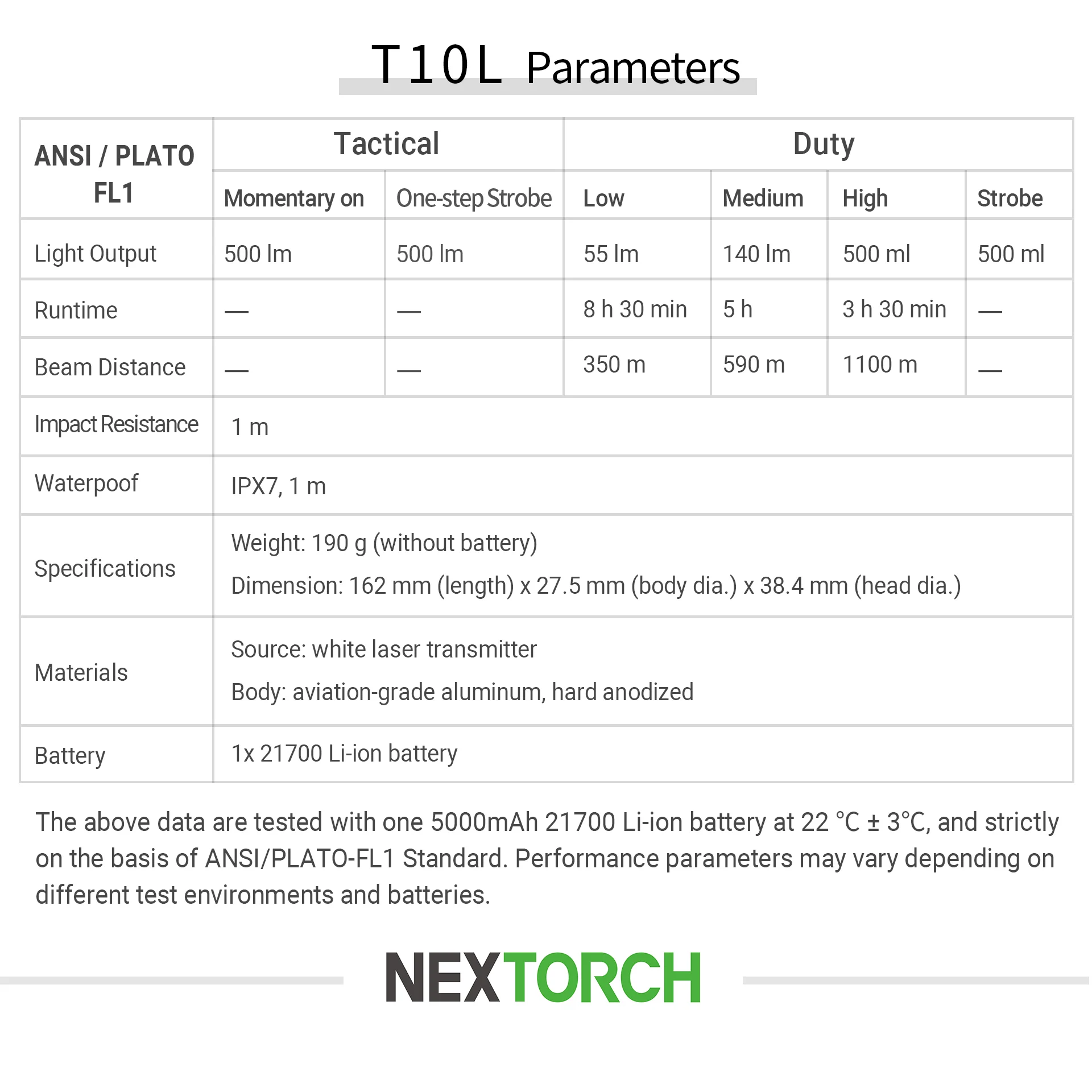 T10L is powered by a 21700 battery. The large capacity of the battery makes this flashlight run longer. The battery is not included in this product. But if you need it, you can contact us. We will charge an extra $1 for this rechargeable battery.