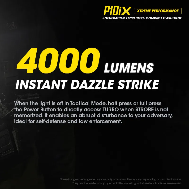 Package includes: P10iX flashlight *1 , NL2150HPi battery *1 , CR123 battery Magazine *1, NTH20 Tactical Holster *1 ,USB-C Charging Cable *1, Lanyard *1 ,Clip *1 ,Spare O-ring *1