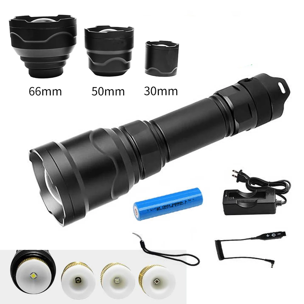 NITESUN HT10 Hunting Light Zoomable 6500K Red Blue Green IR LEDs Interchangeable Flashlight Beam Throw 500 Meters Search Torch