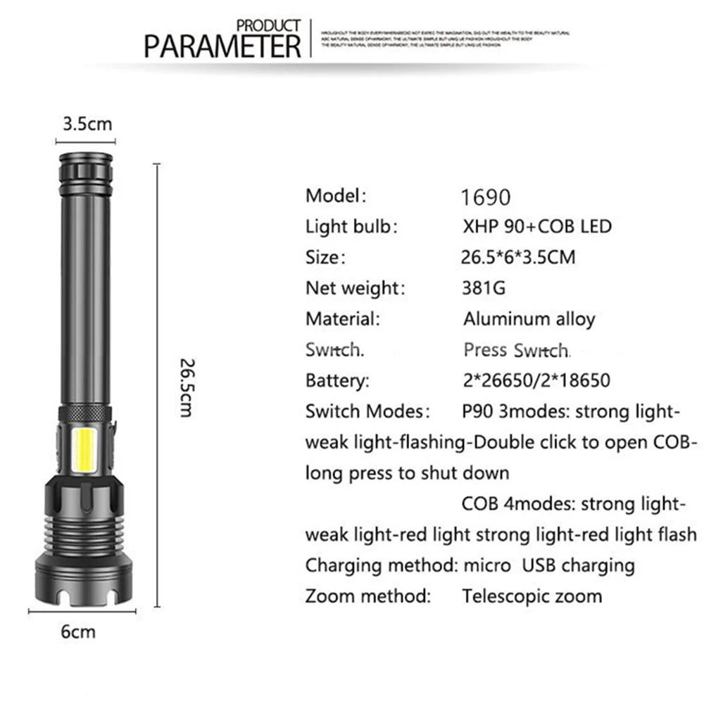 P90—-2*26650/2*18650 (need to purchase the package with battery)