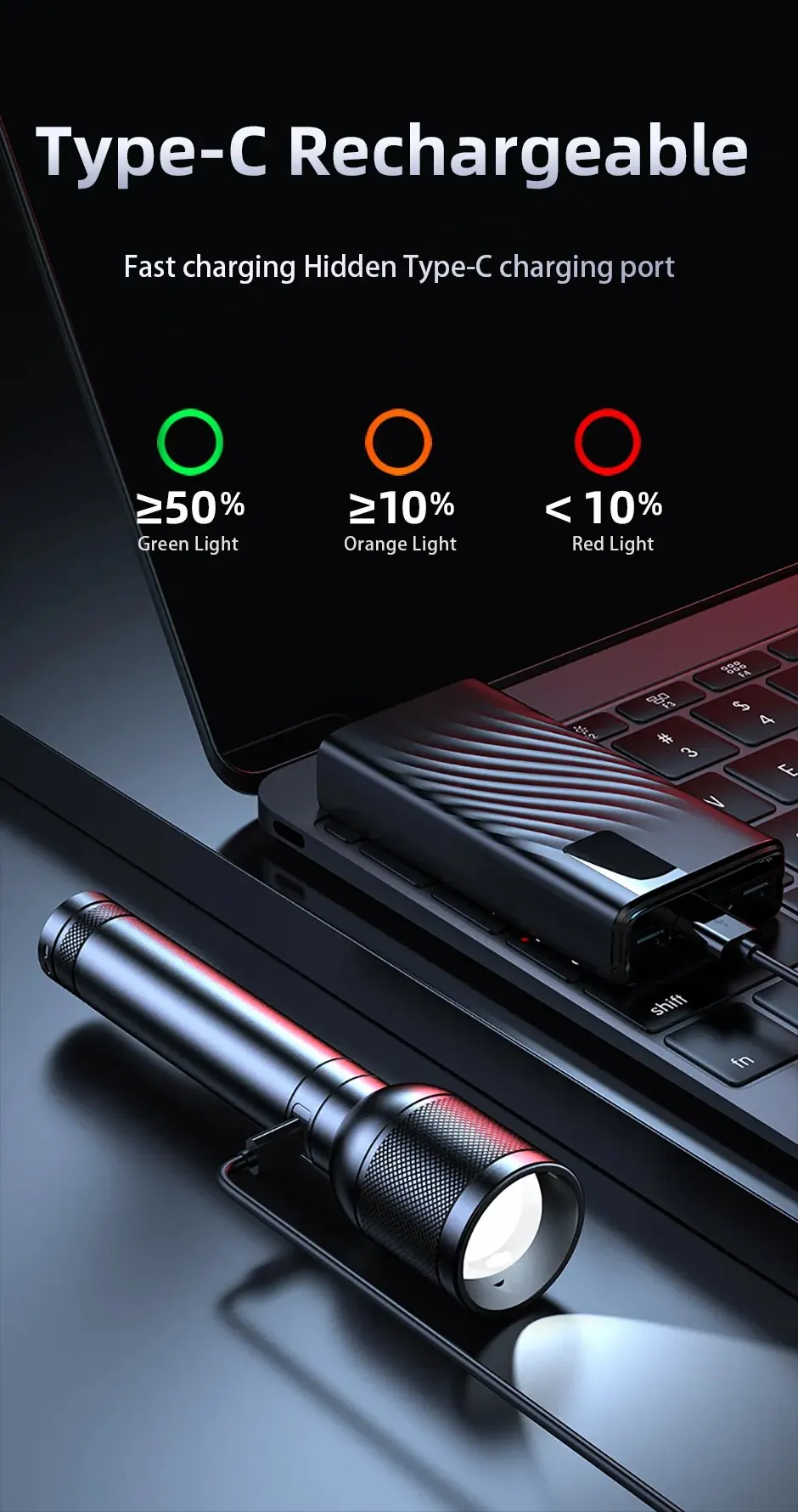 • High Lumen LED :With a powerful 3200 lumen LED, this flashlight provides bright light for any situation, ensuring clear vision in dark areas.